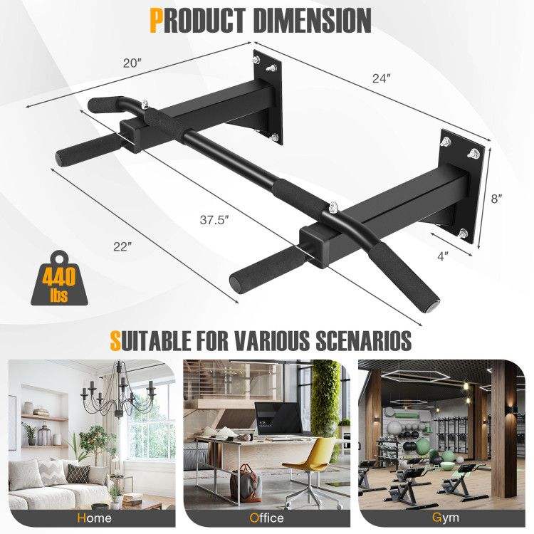 Barra de dominadas multifunción para montar en la pared con agarres de espuma cómodos