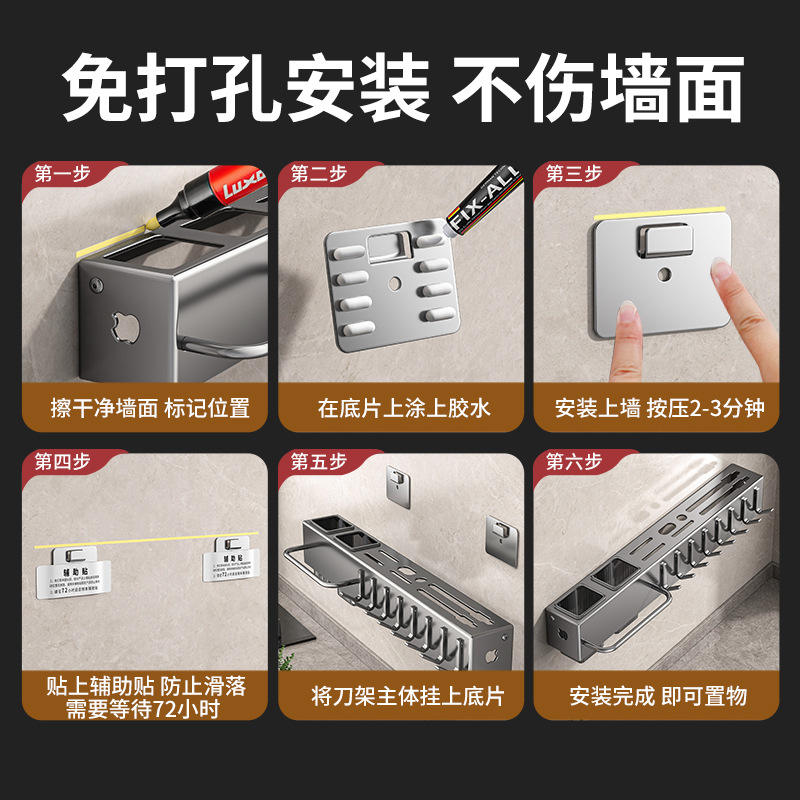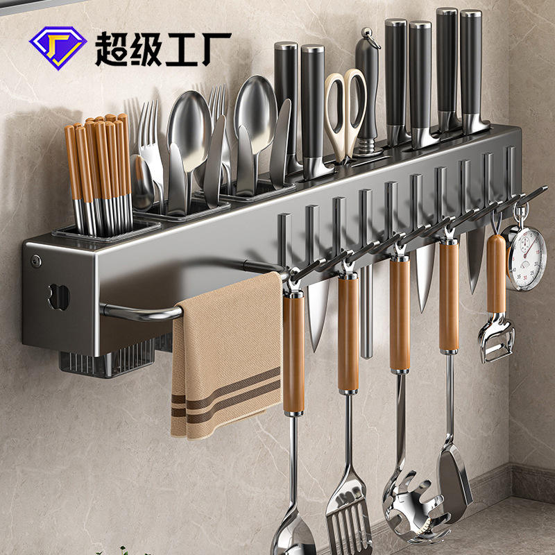 Portacuchillos Multifuncional de Pared con Soporte para Palillos, Organizador de Cocina No Magnético, Forma Rectangular