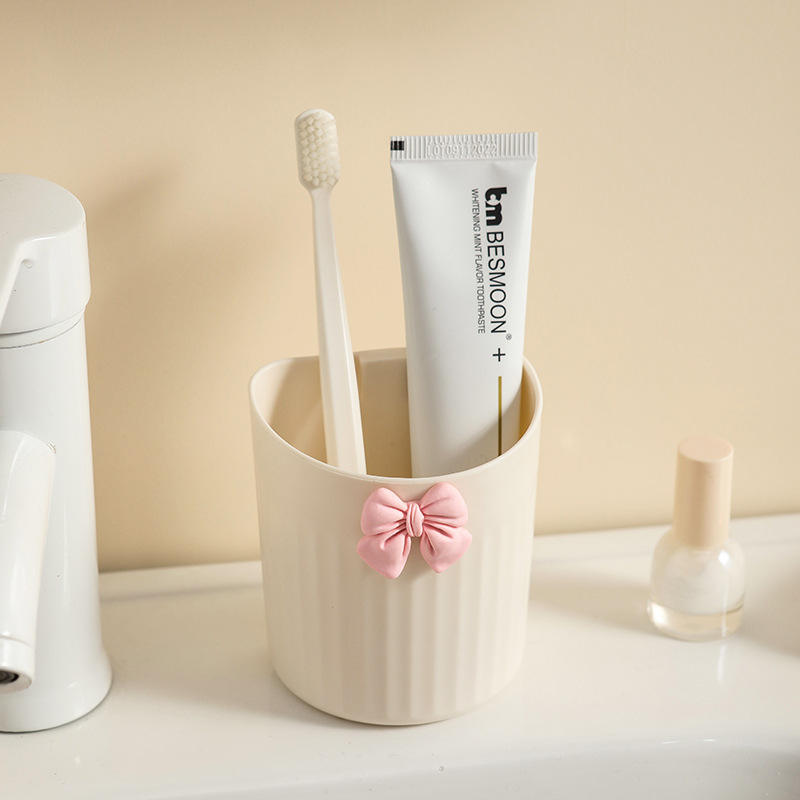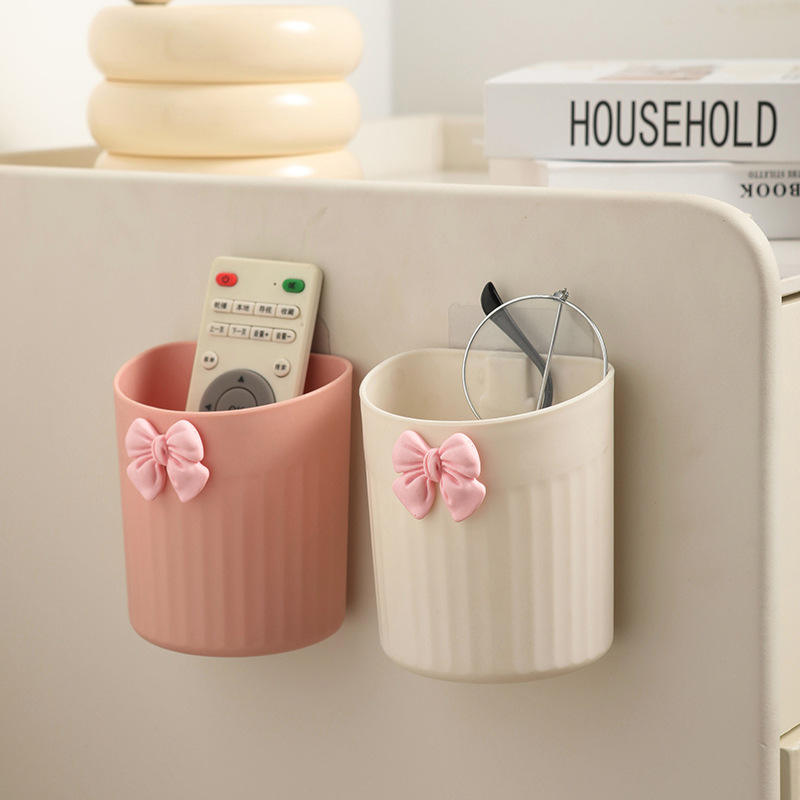Soporte para bolígrafos montado en la pared, organizador de almacenamiento redondo 4 en 1 de PP para brochas de maquillaje, lápices, artículos de papelería, escritorio con diseño de lazo