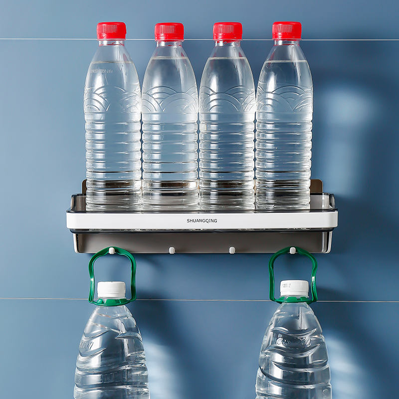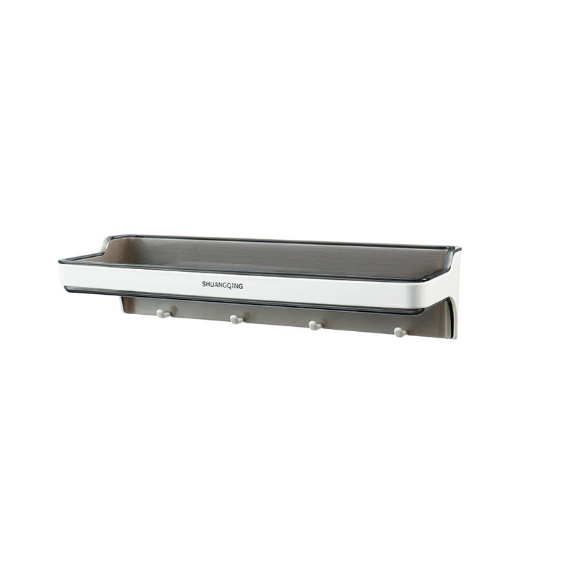 Estante de almacenamiento de plástico montado en la pared para baño y cocina sin perforación Organizador de pared de 4 ganchos con estante de soporte