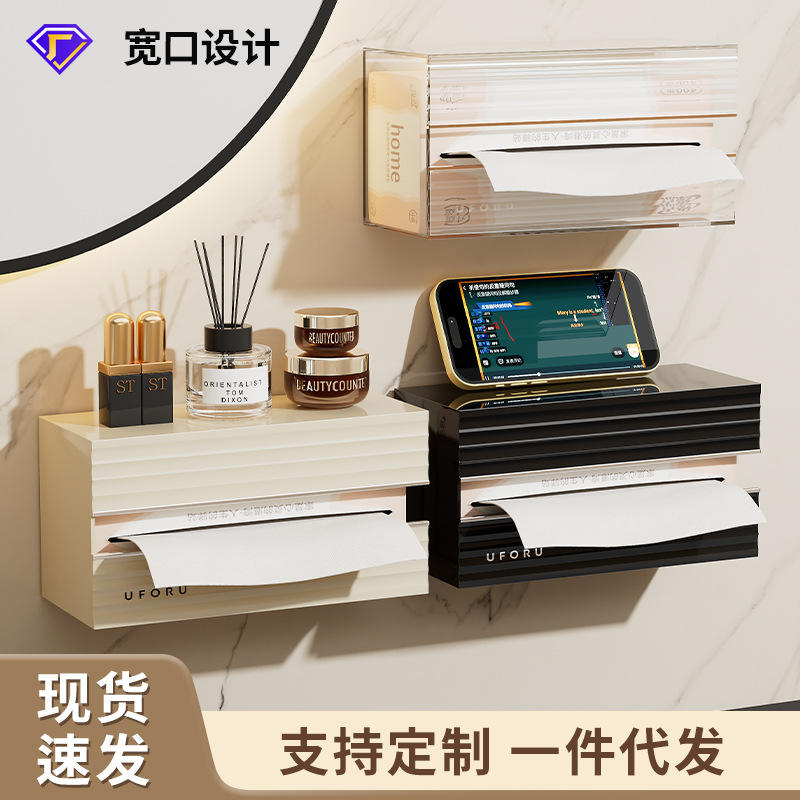 Caja de pañuelos montada en la pared, almacenamiento multiusos de color blanco crema para baño y sala de estar