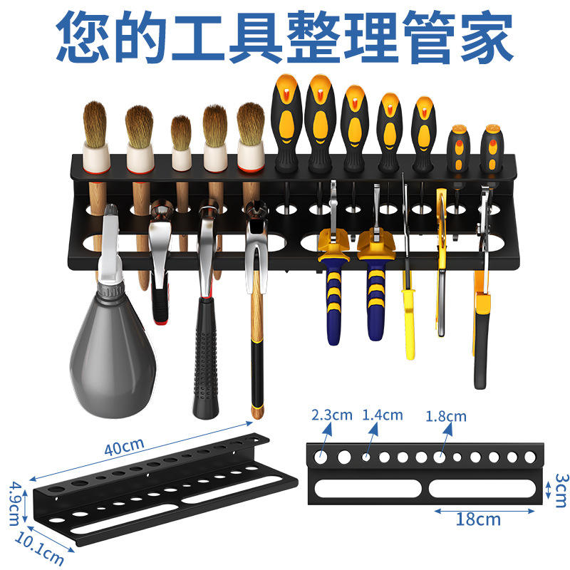 Estante para herramientas montado en la pared, organizador de almacenamiento de 2 niveles de acero al carbono para destornilladores, martillos, alicates, llaves, garaje, taller
