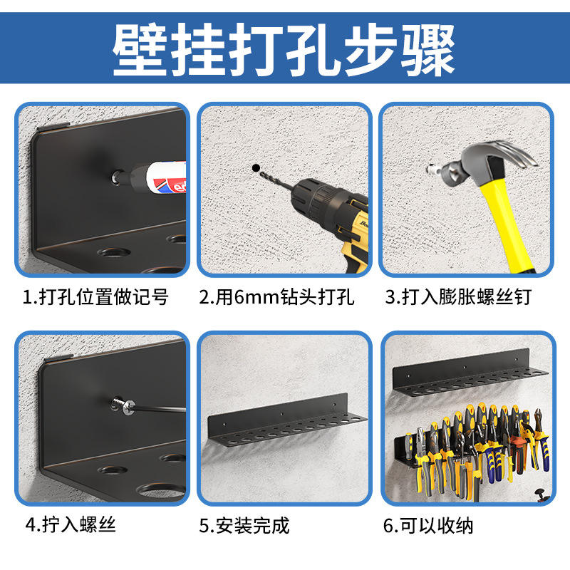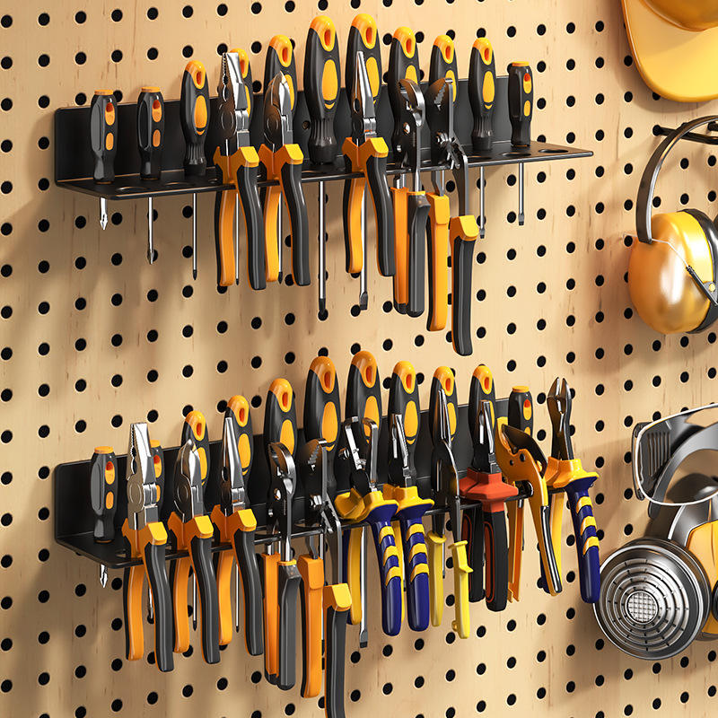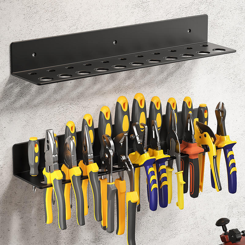 Estante de almacenamiento de herramientas montado en la pared, de acero al carbono, de 2 niveles, para alicates, destornilladores, organización de taller