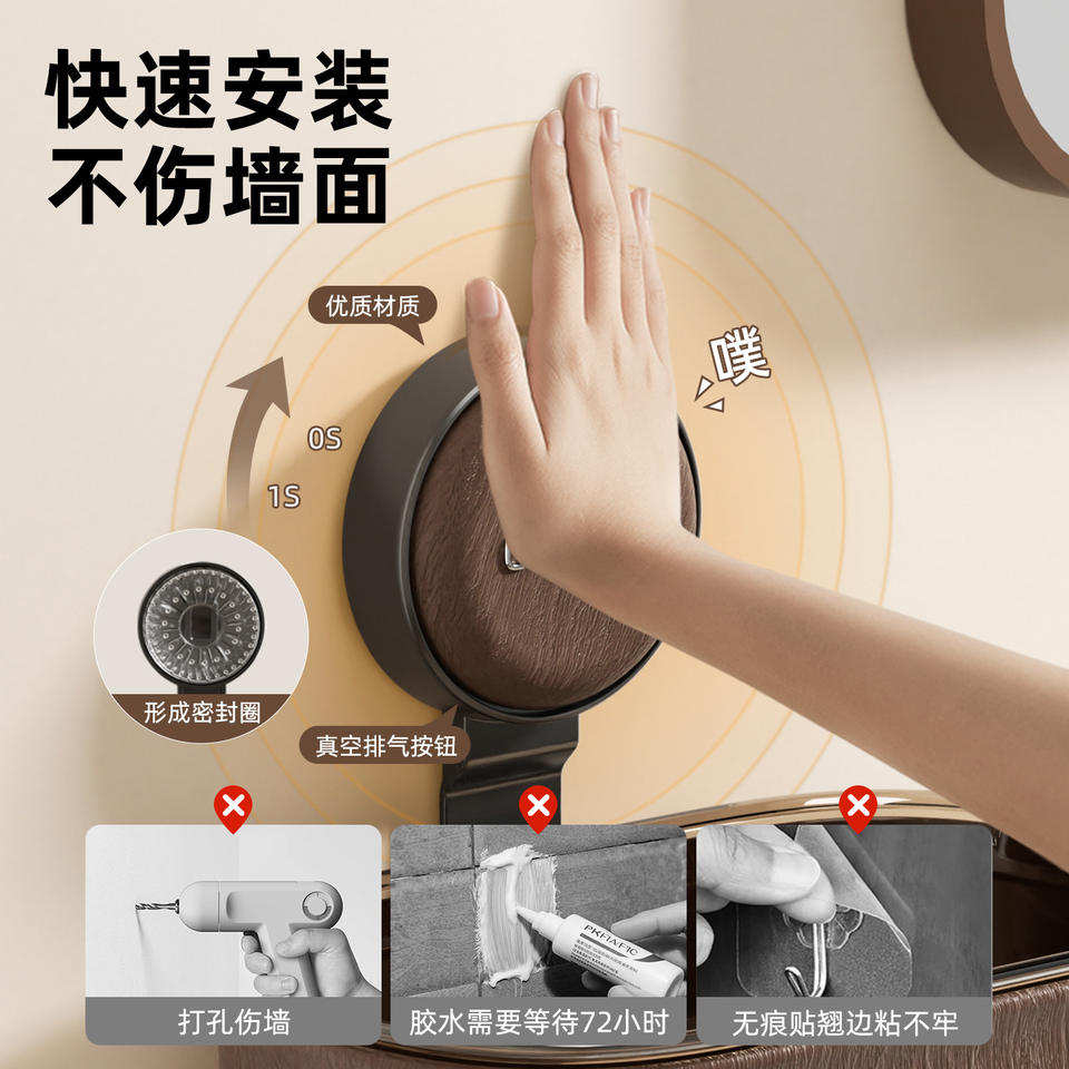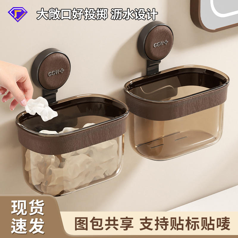 Caja de almacenamiento de toallas montada en la pared, circular, sin necesidad de perforar, organizador para lavabo de baño, color sólido, contenedor de reciclaje reutilizable