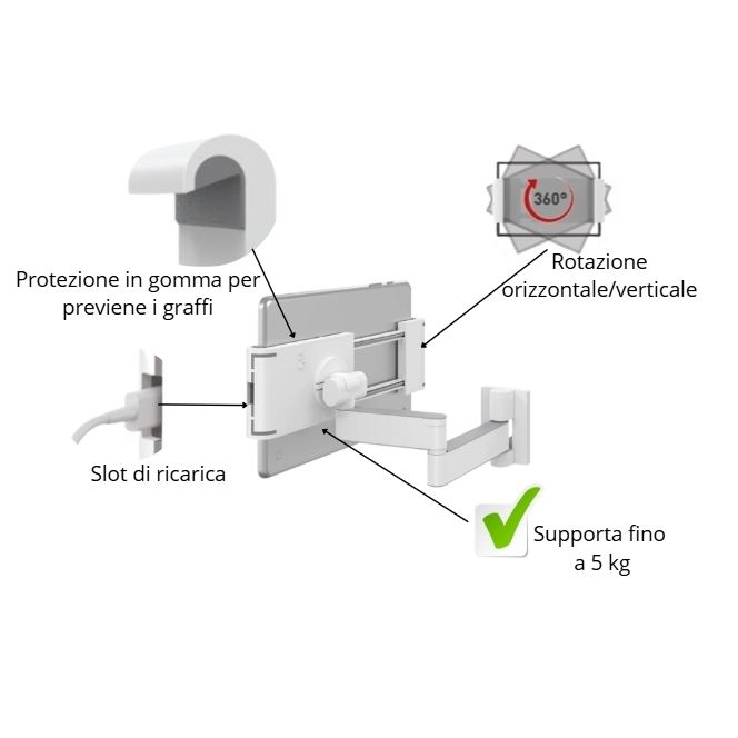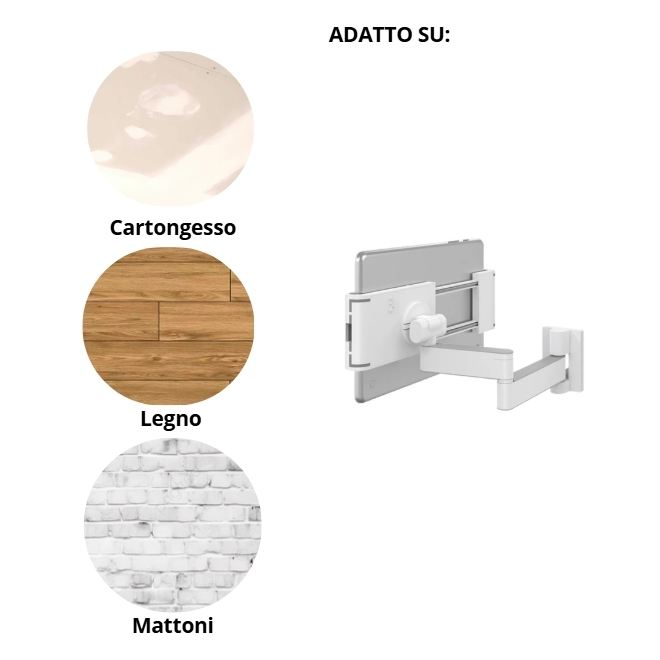 Soporte de Pared para Tablet de 7-12 Pulgadas, Brazo Ajustable con Rotación de 360 Grados, Inclinación y Giro, para Tablets y PC
