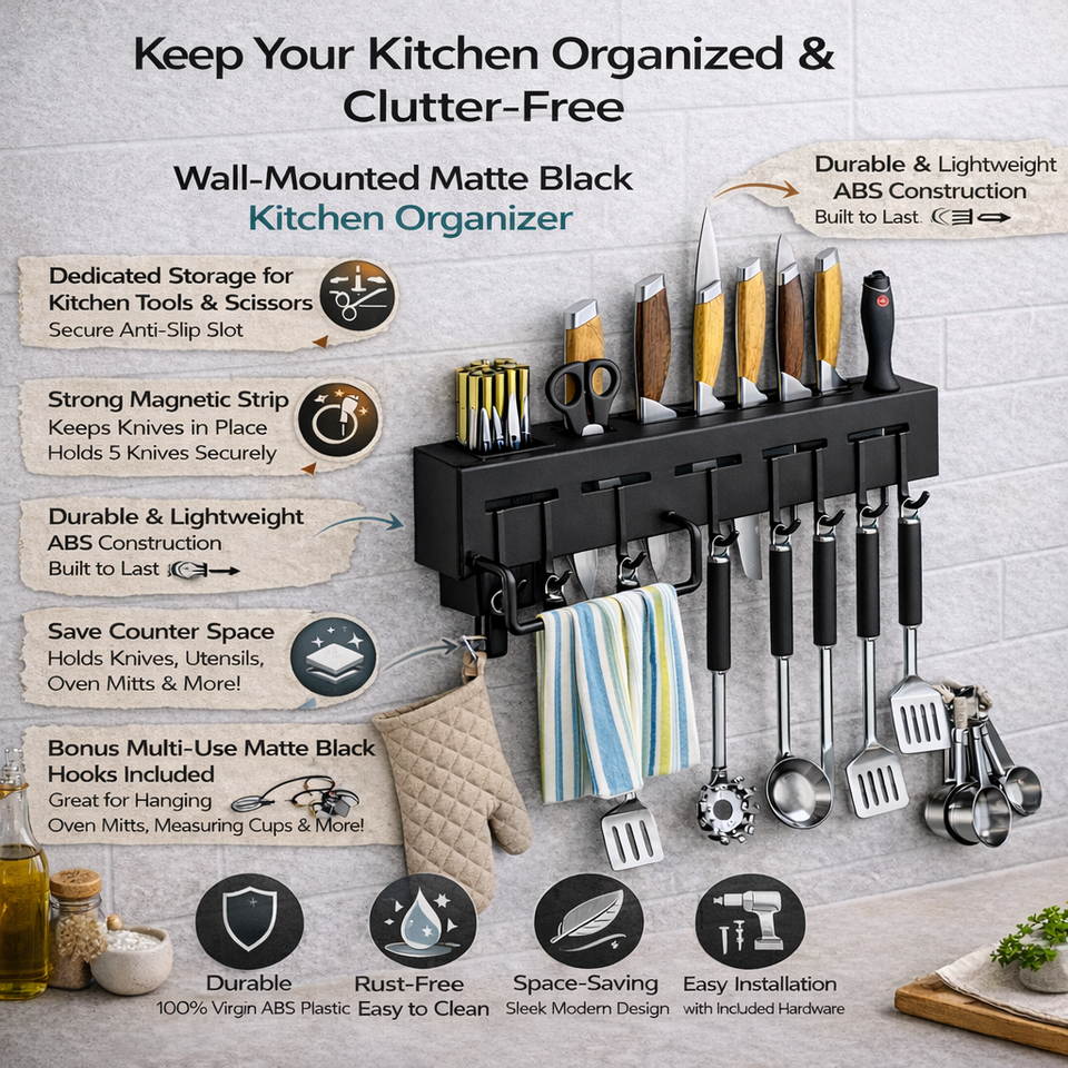Estante de Pared con Toallero, Organizador Multiusos para Cocina, Estantes de Pared para Dormitorio, Almacenamiento para el Hogar y Jardín