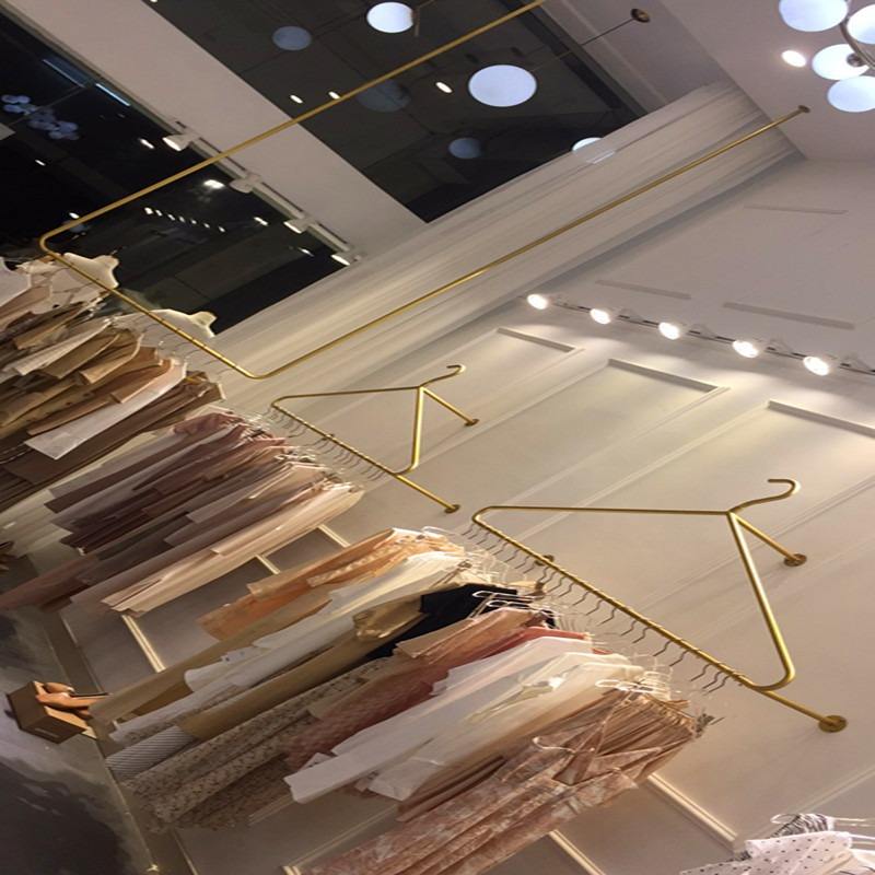 Estantes montados en la pared para tiendas de ropa para niños Perchas de nano-oro