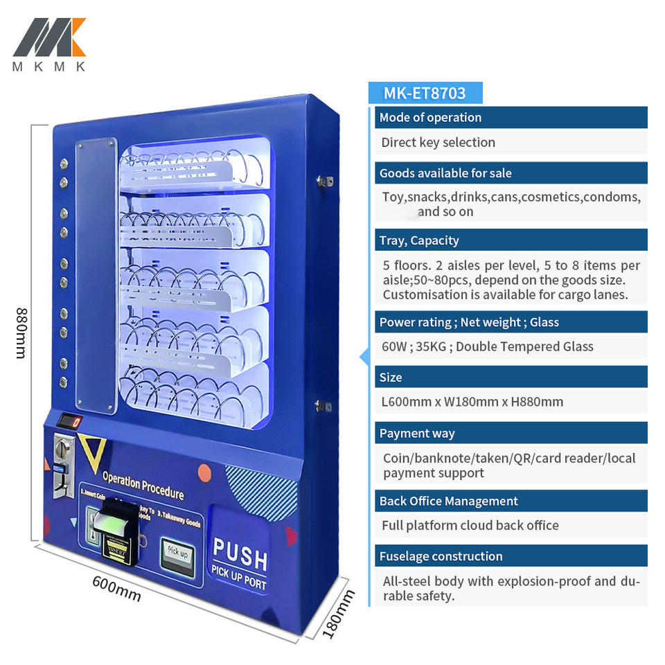 Máquina Expendedora Pequeña de Pared, Personalizable, con Verificación de Edad, Dispensador de Billetes, Dispensador de Monedas, Refrescos y Aperitivos