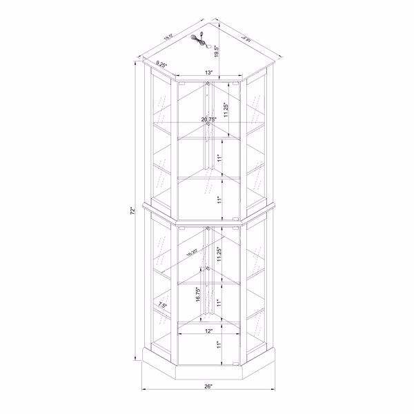 Vitrina Esquinera de Nogal con 6 Estantes, Luces, Espejos y Estantes Ajustables (Bombillas E26 No Incluidas)