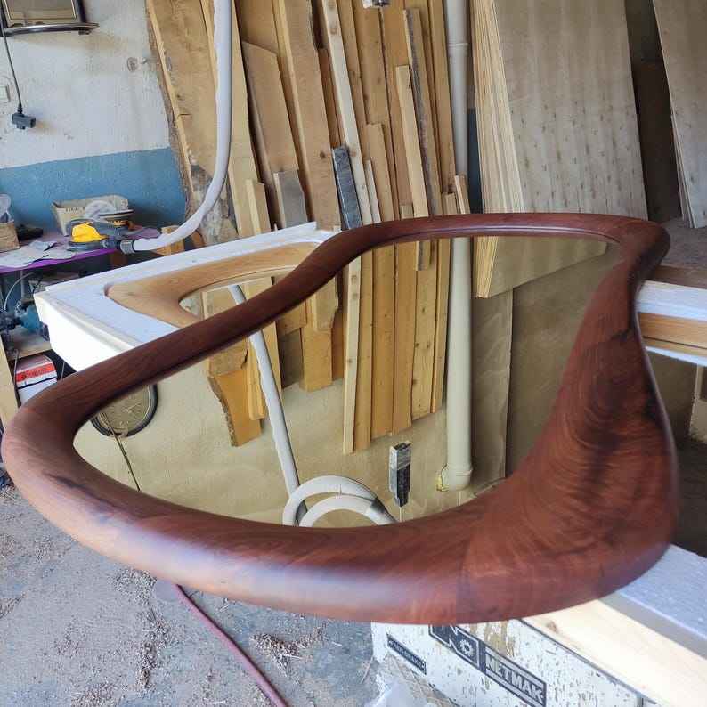 Espejo de pared Art Deco asimétrico de madera de nogal, espejo de entrada decorativo ecológico hecho a mano