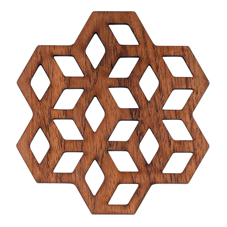 Posavasos de nogal hecho a mano posavasos de madera de teca conjunto de cuatro posavasos de teca de diseño geométrico para decoración del hogar y Mesa