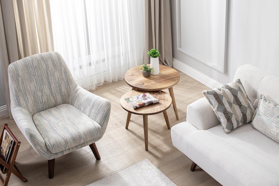 Juego de Mesa de Centro de Nogal, Estilo Moderno de Mediados de Siglo, Juego de Mesas Auxiliares Redondas de Madera, Mesa Nido, Diseño Minimalista y Compacto