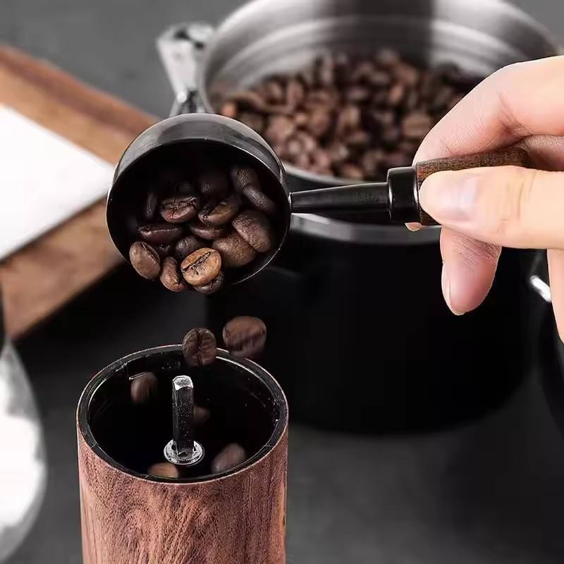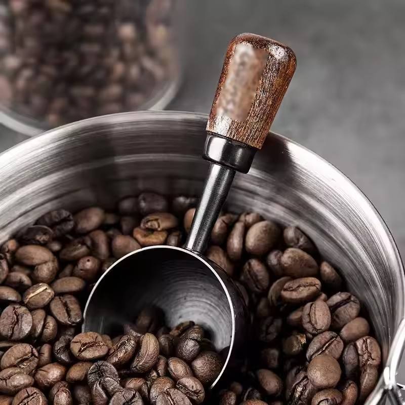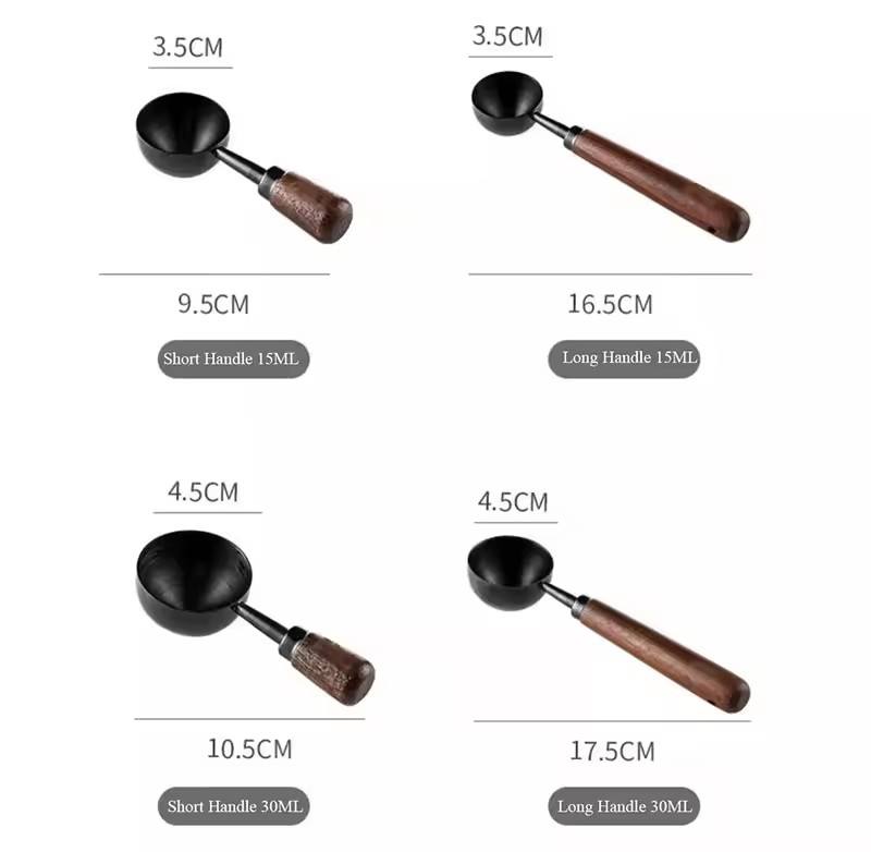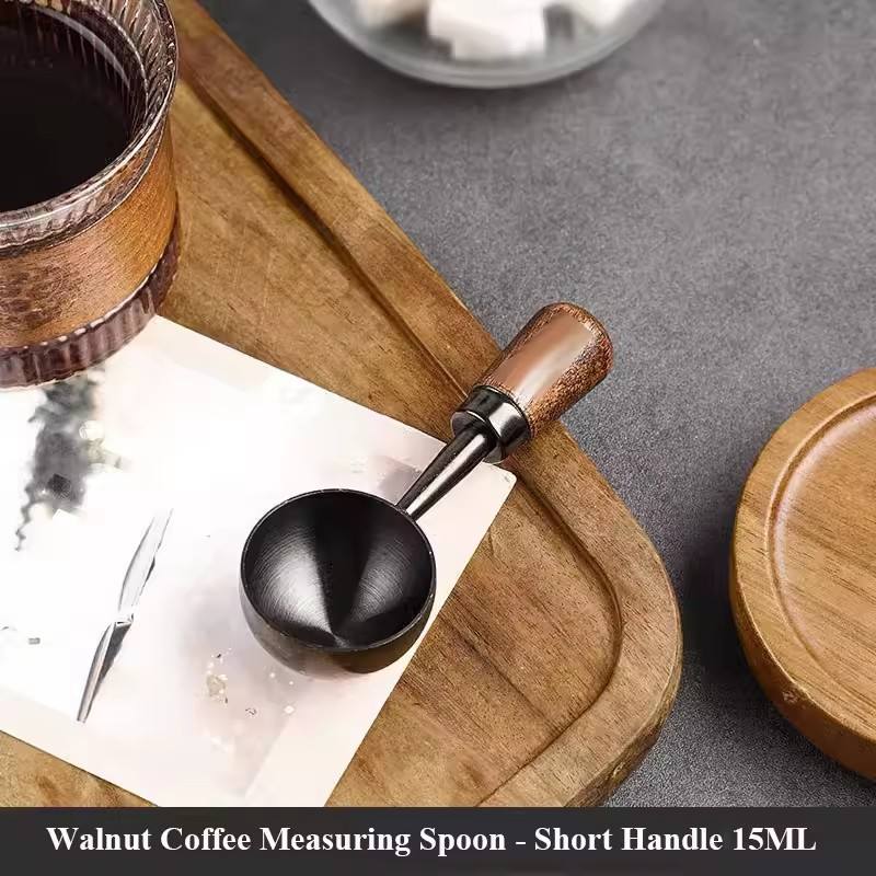 Cuchara de café con mango de nogal, cuchara de café de mango largo, cuchara de café de mango corto, cuchara medidora de café en polvo de acero inoxidable, herramienta de cocina