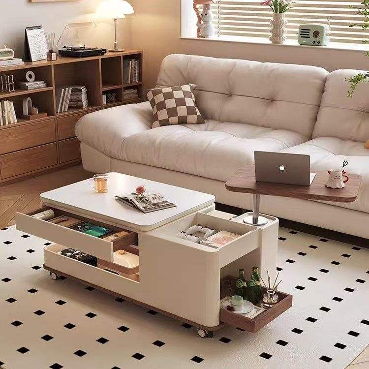 Mesa de centro móvil de madera maciza de nogal, mesa auxiliar multifuncional con almacenamiento elevable para sala de estar y uso doméstico