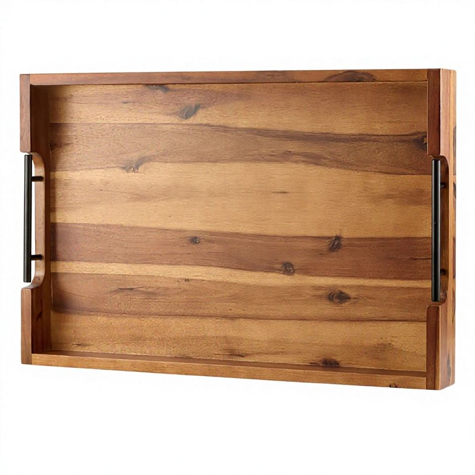 Bandeja de Servir Multifuncional Portátil de Madera de Nogal con Diseño Rústico para Cocina y Sala de Estar, con Asas de Latón Dorado y Doble Nivel Tallado
