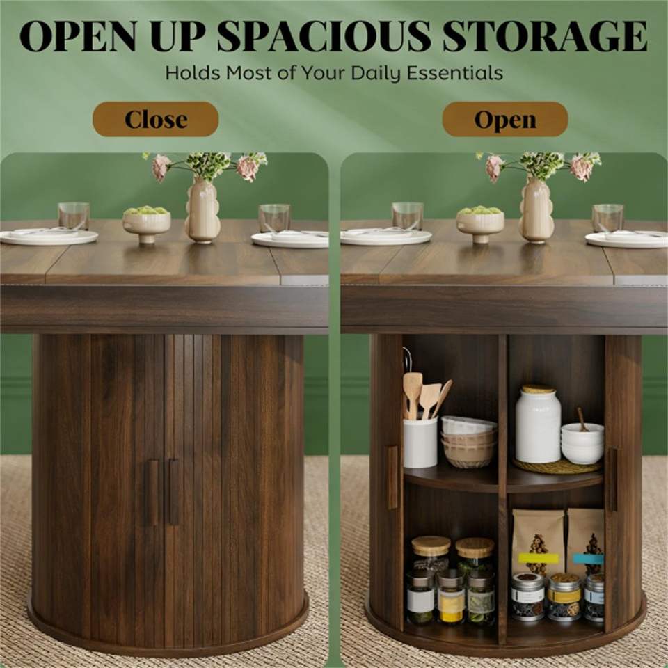 Mesa de Comedor de Madera de Nogal con Estante de Almacenamiento para Cocina, Sala de Estar o como Mesa de Centro Pequeña