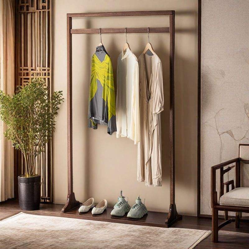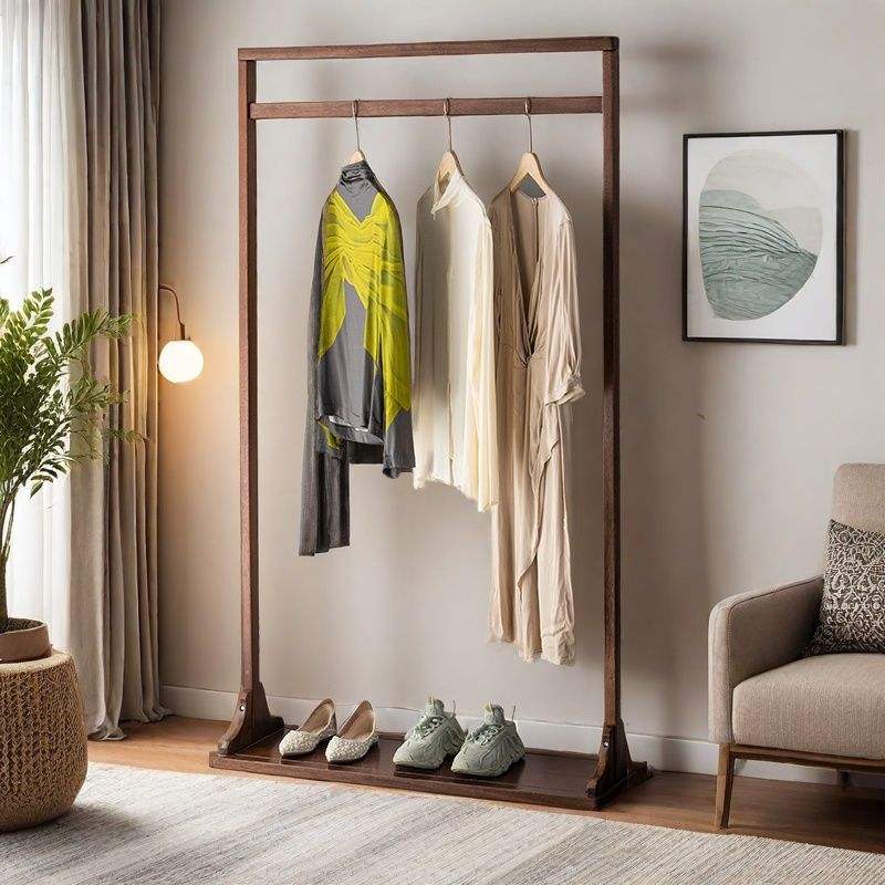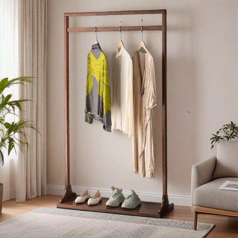 Perchero de pie de madera de nogal maciza para ropa, perchero de madera para sala de estar y dormitorio, uso doméstico sencillo con estante para zapatos