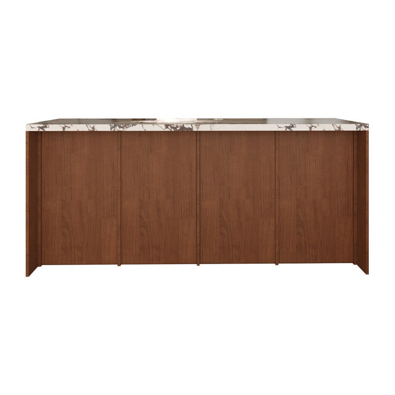 Isla de Cocina Moderna con Estructura de Madera de Nogal, Encimera de Madera Sólida, Gabinete de Almacenamiento para Sala de Estar