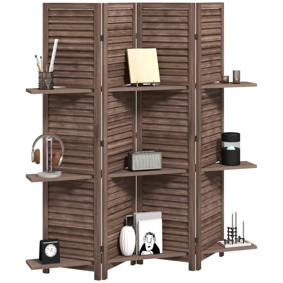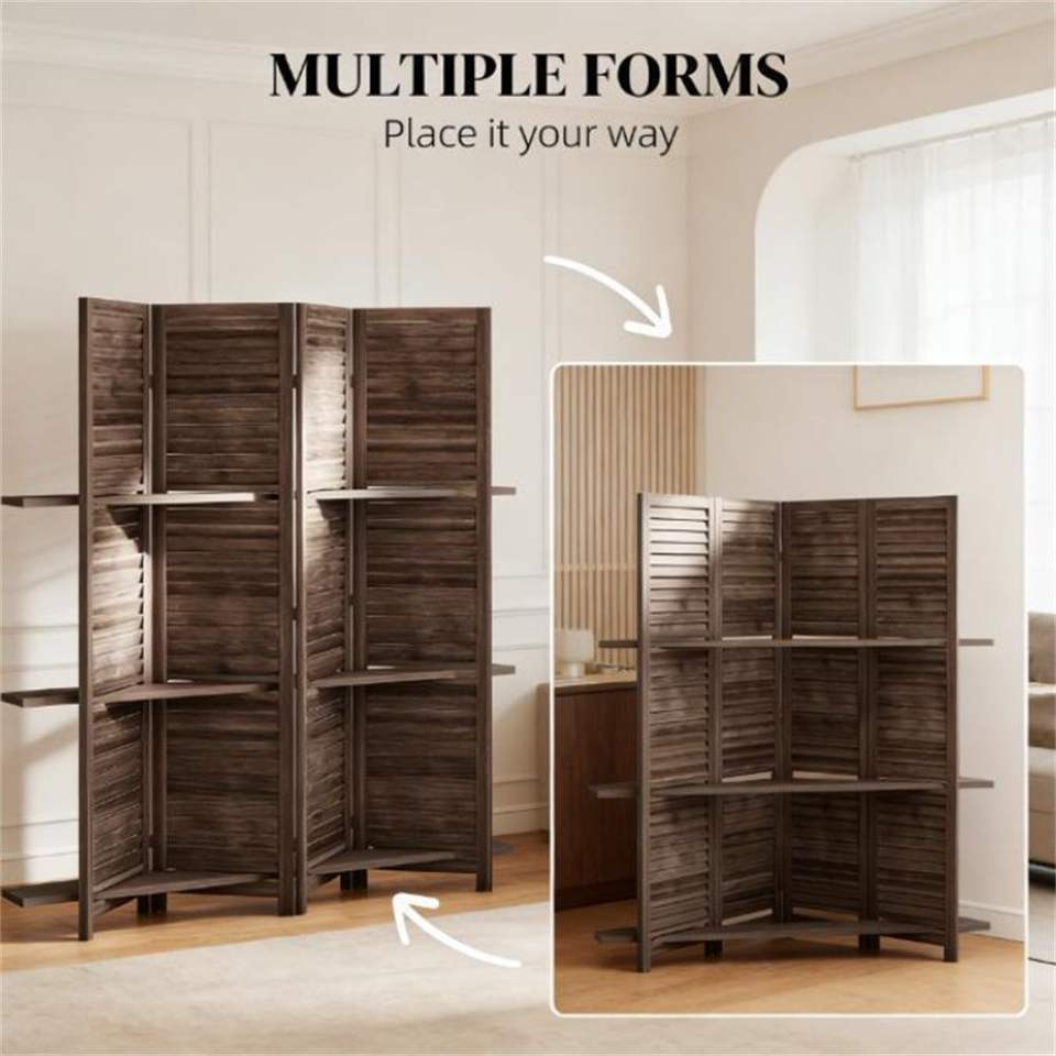 Biombo de Madera de Nogal de 4 Paneles, Separador de Habitaciones Natural y Elegante