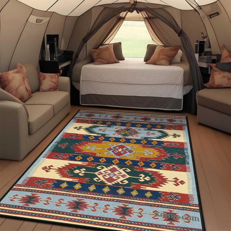 Alfombra Kilim Wan Xinlong, Rectangular, con Patrón Geométrico, para Exteriores, Antideslizante, Resistente a las Manchas, Lavable con Agua, de Terciopelo Cristal