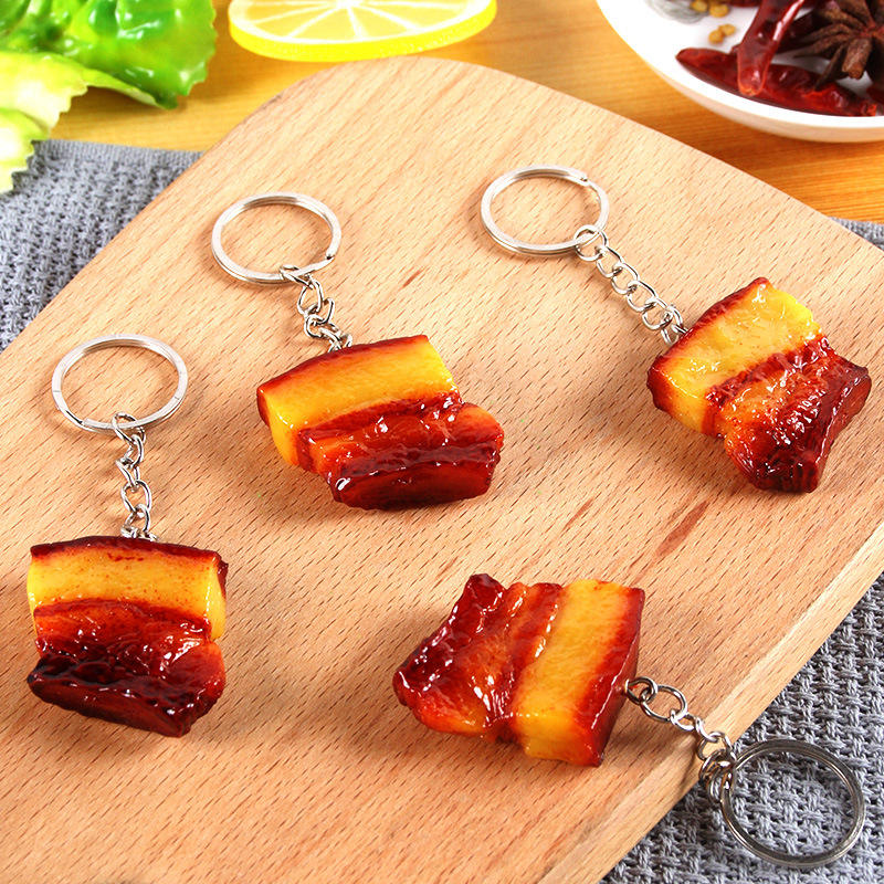 Wangdun transfronterizo simulación comida carne estofado llavero cerdo vientre tocino aperitivo juego colgante