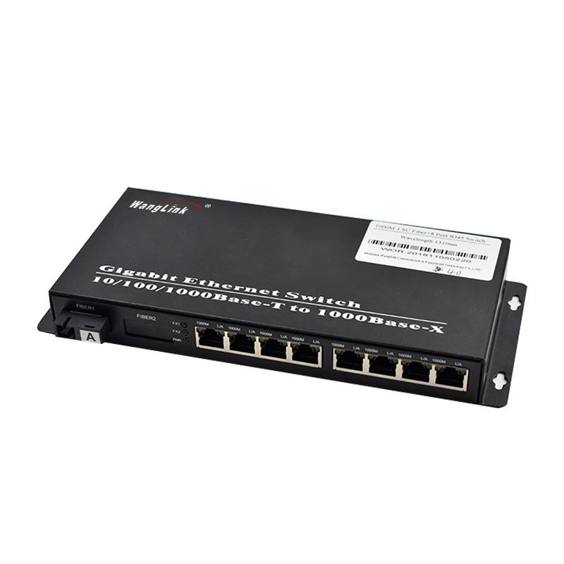 1 1000M Base de Fibra + 8 100M Base RJ45 Puertos Convertidor de Medios Ópticos