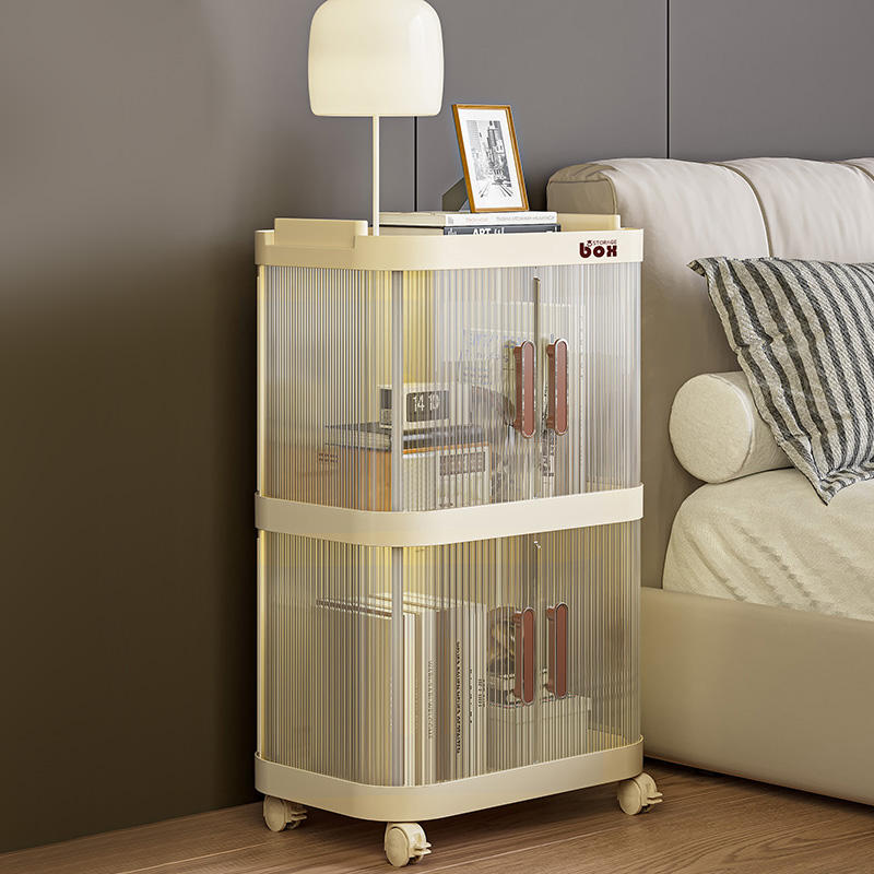 Carro de almacenamiento de alimentos multicapa Wannuo, armario de almacenamiento de doble puerta Visual transparente, carro de almacenamiento de plástico para dormitorio con ruedas