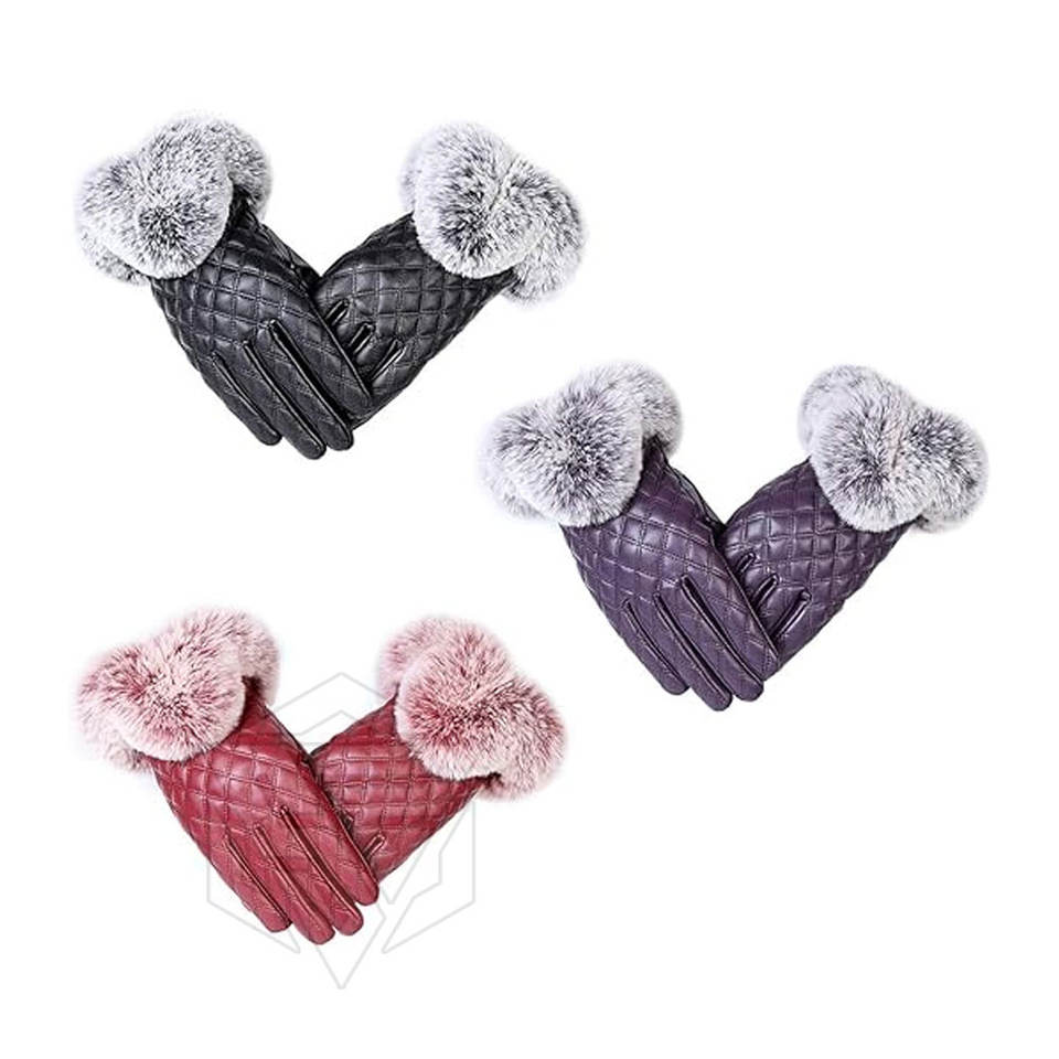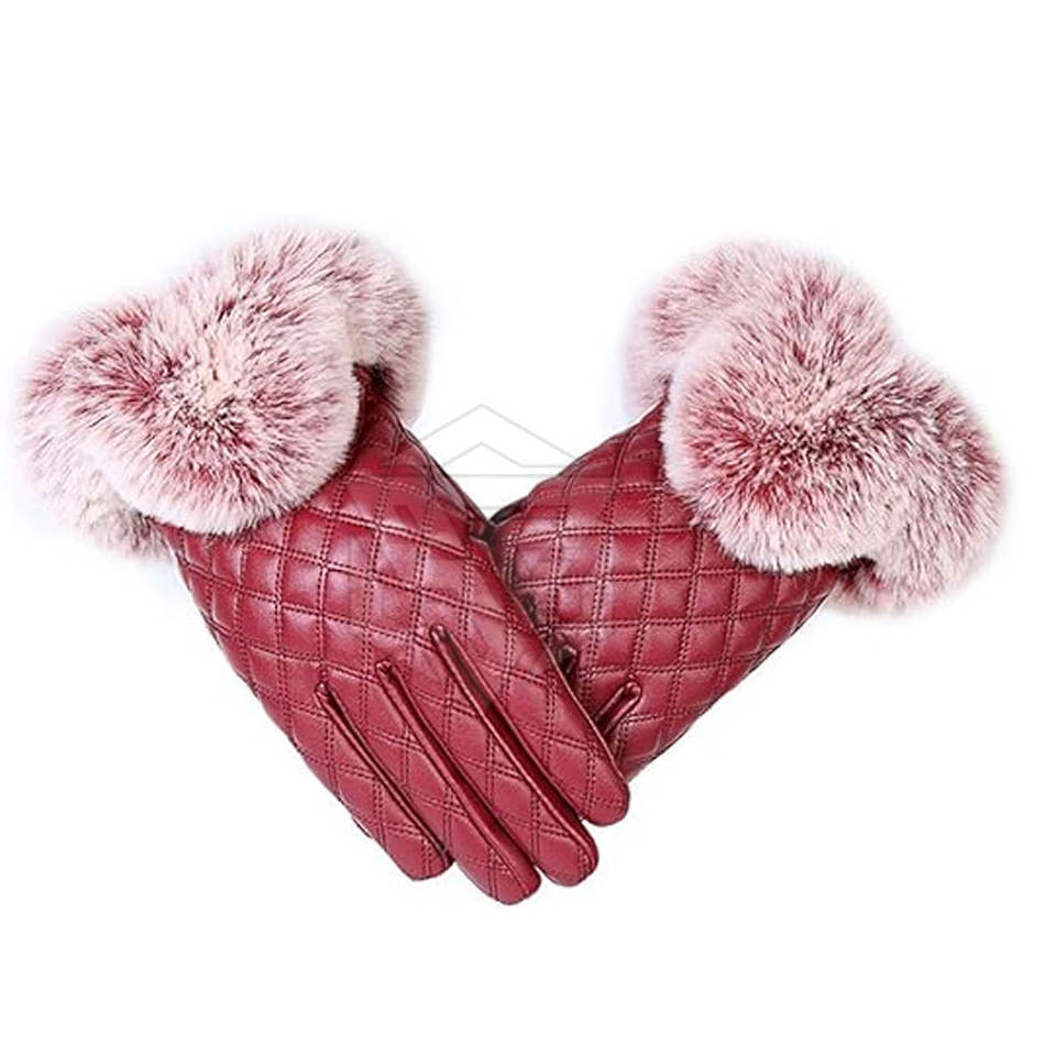 Venta al por mayor de guantes de invierno personalizables cálidos de piel de oveja con forro de piel de conejo guantes de pantalla táctil