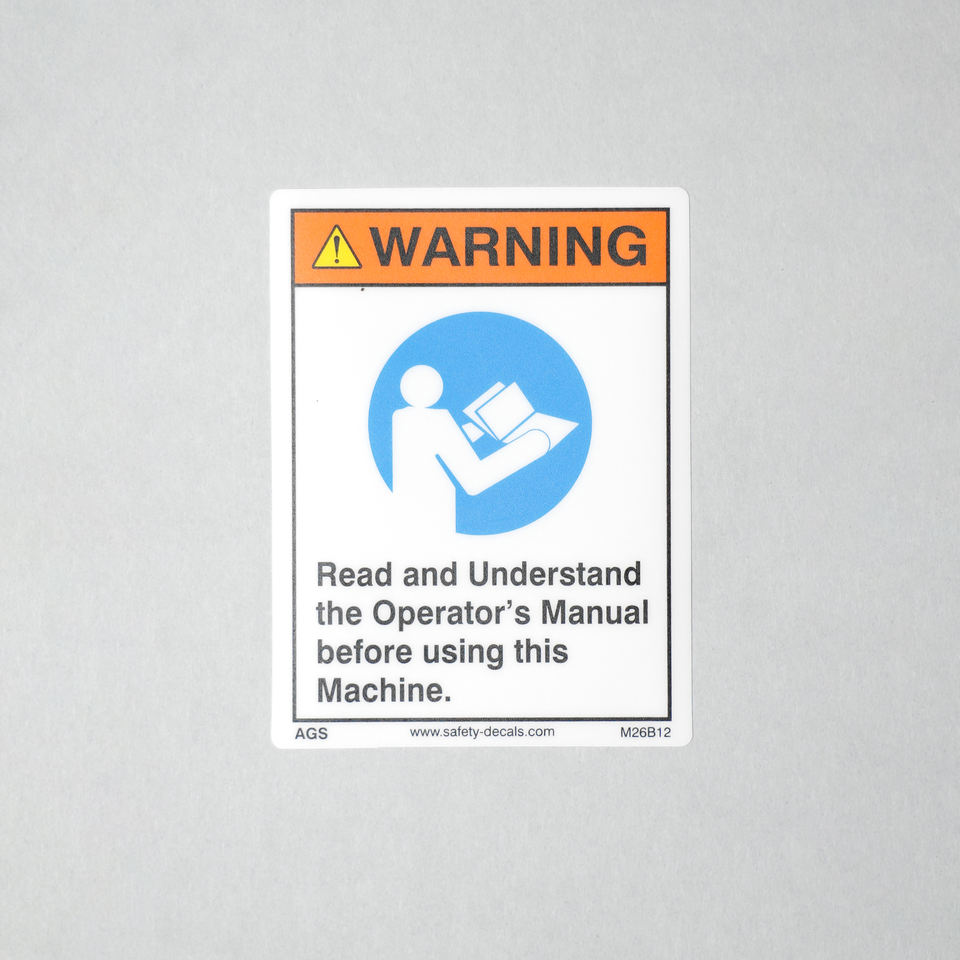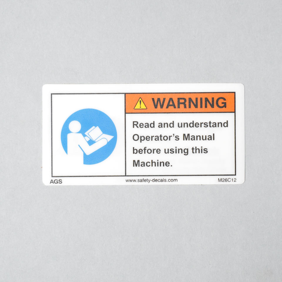 Advertencia: Leer el Manual del Operador al Usar Esta Máquina, Etiqueta Adhesiva de Seguridad M26, Equipo Industrial, Resistente al Agua y a los Arañazos