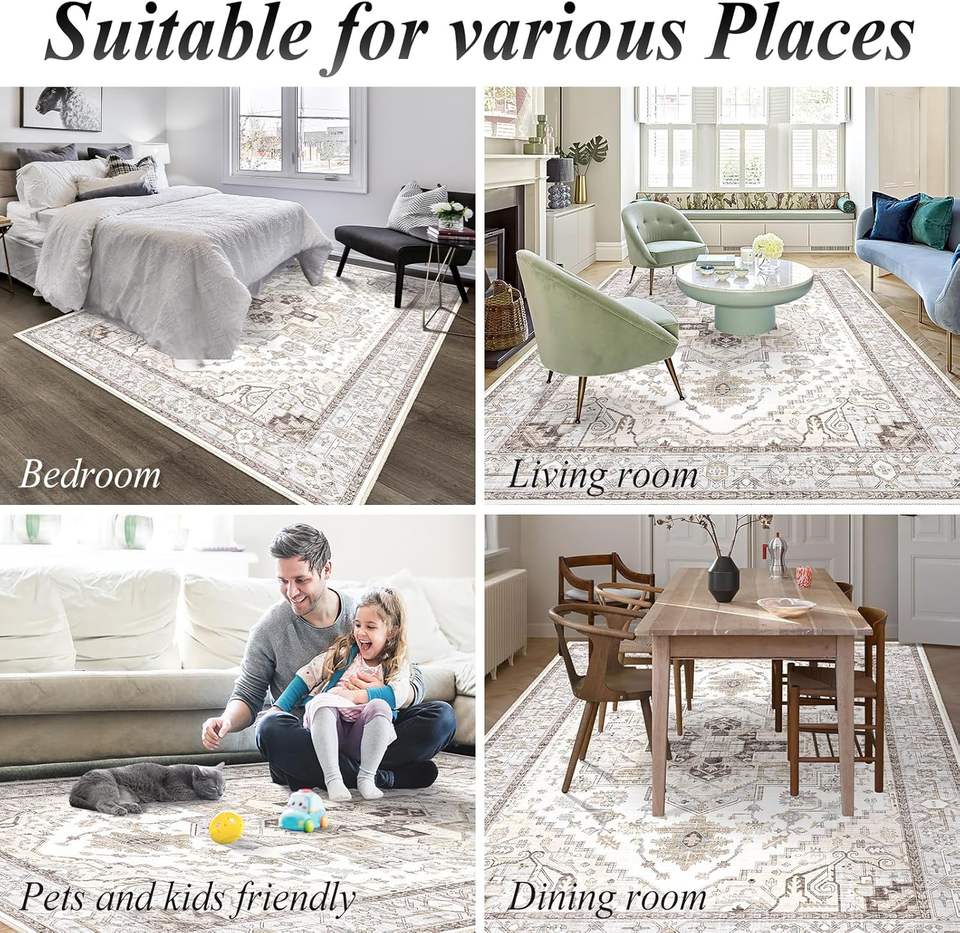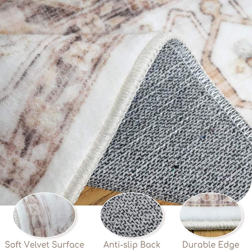 Alfombras Lavables para Sala de Estar, Alfombra Impresa Antideslizante para Comedor, Alfombra Súper Suave de Estilo Vintage