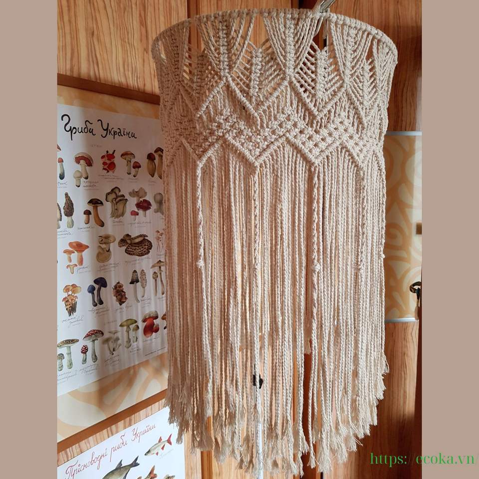 Pantalla de Lámpara de Macramé de Algodón Lavable Hecha a Mano, Estilo Boho, Cubierta de Lámpara Colgante Tejida para Decoración de Dormitorio de Lujo, de Vietnam