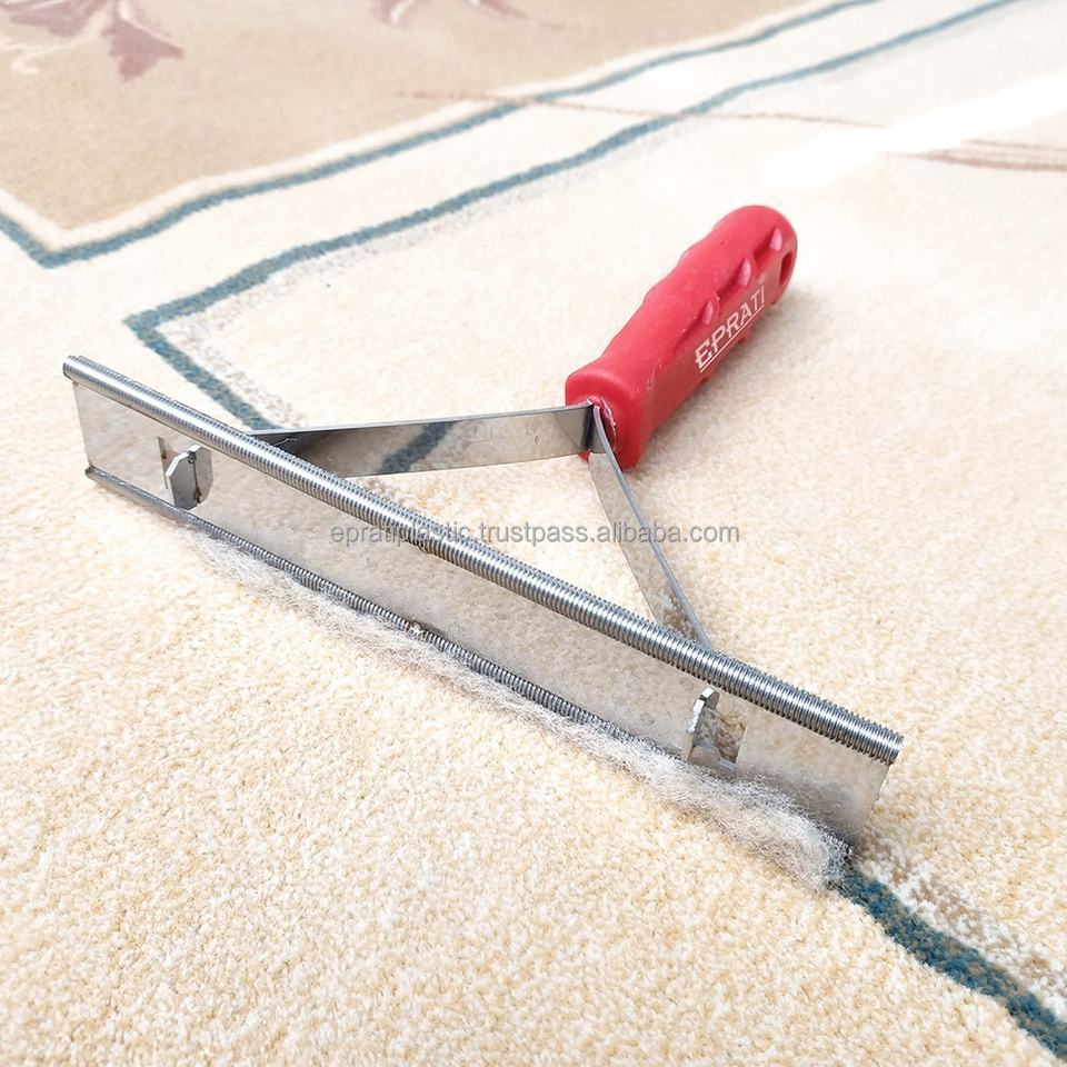 Punta de acero inoxidable portátil reutilizable lavable y mango de plástico, peine removedor de pelusas de alfombras de Turquía para alfombras