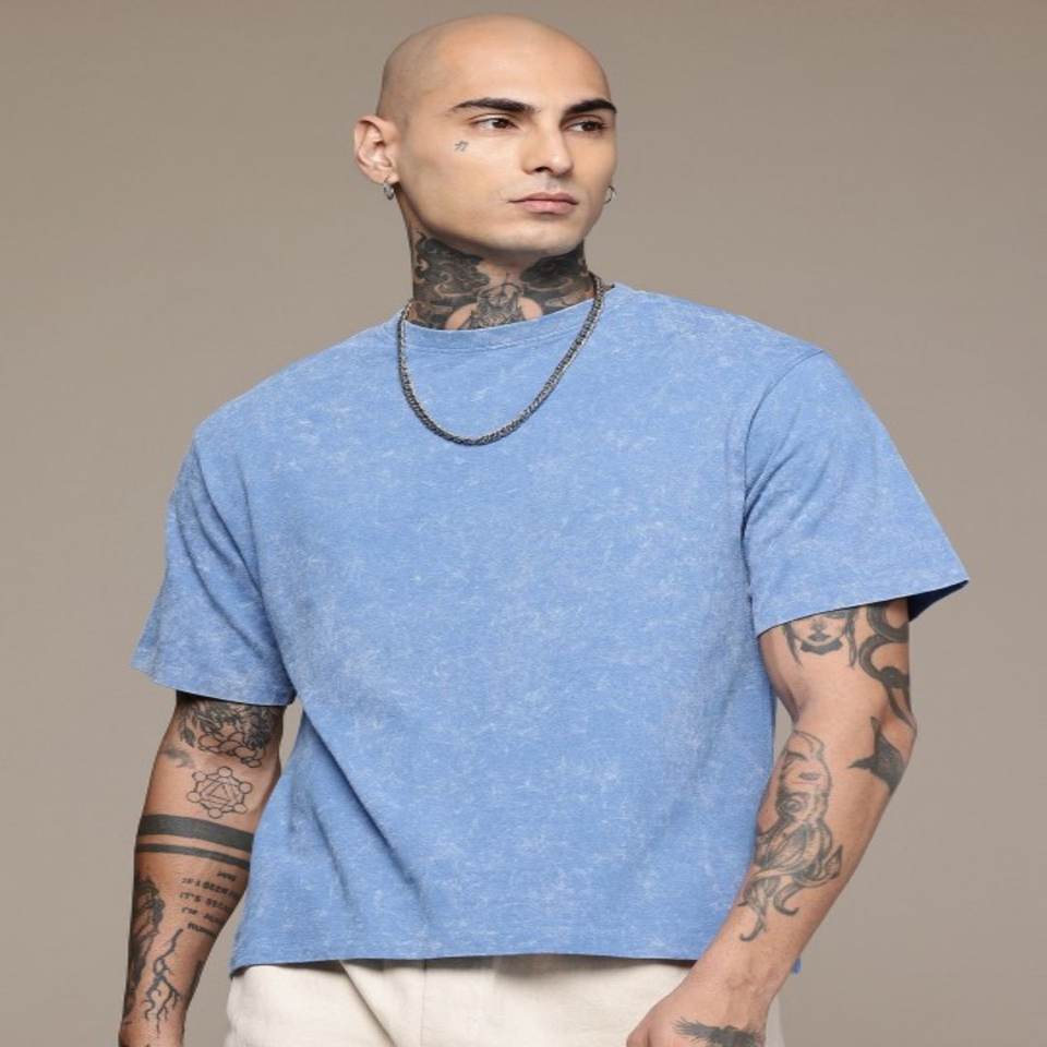 Camiseta de ajuste relajado con estampado de efecto lavado y tinte, Camiseta de algodón de punto, ropa de hombre hecha en la India