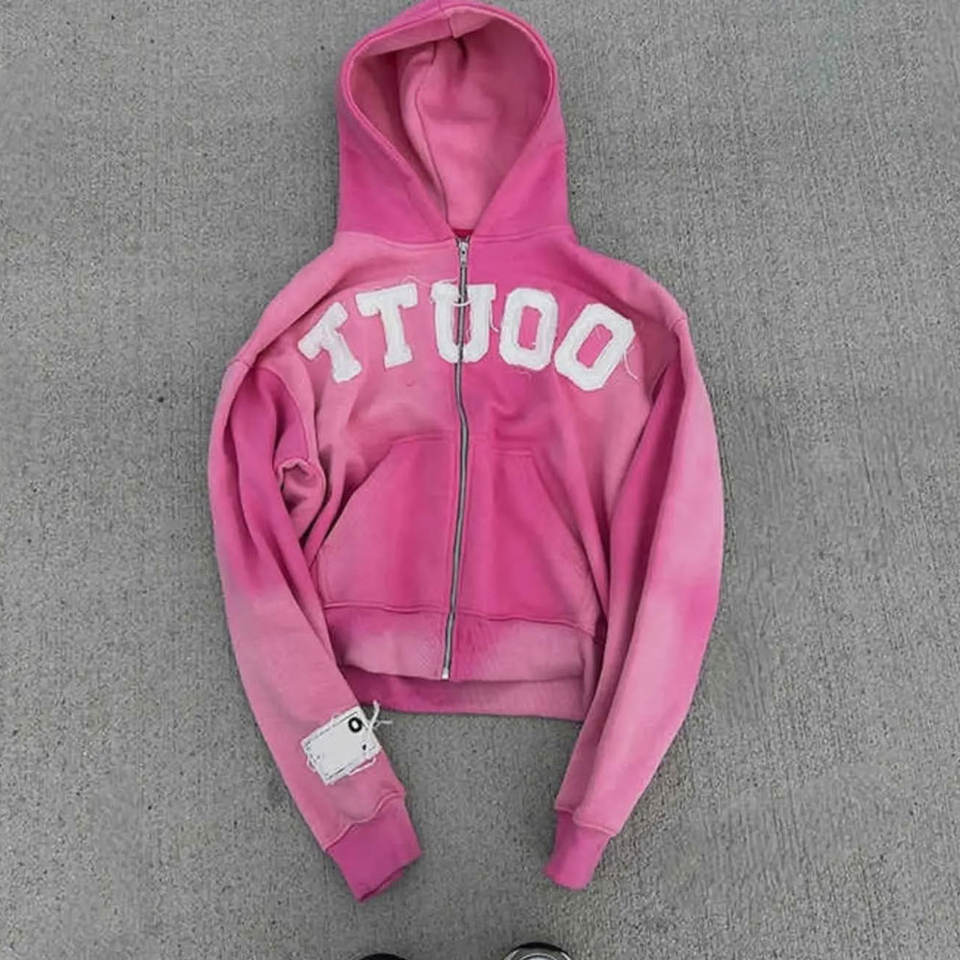 Sudadera con capucha para hombre lavada con bordado elevado Sudaderas con capucha desgastadas de algodón cepillado con logotipo bordado
