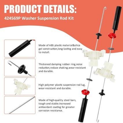 Kit de Varillas de Soporte para Lavadora 424569P, Juego Completo de Plástico, Accesorios de Fácil Instalación