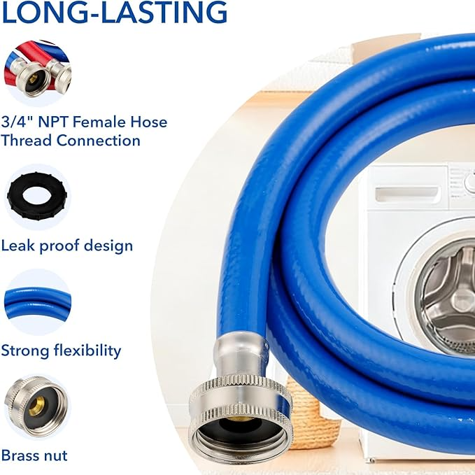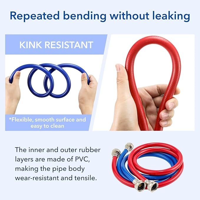 Juego de Mangueras para Lavadora, Manguera de Agua Fría y Caliente, Mangueras de Entrada de PVC Reforzado para Lavadora