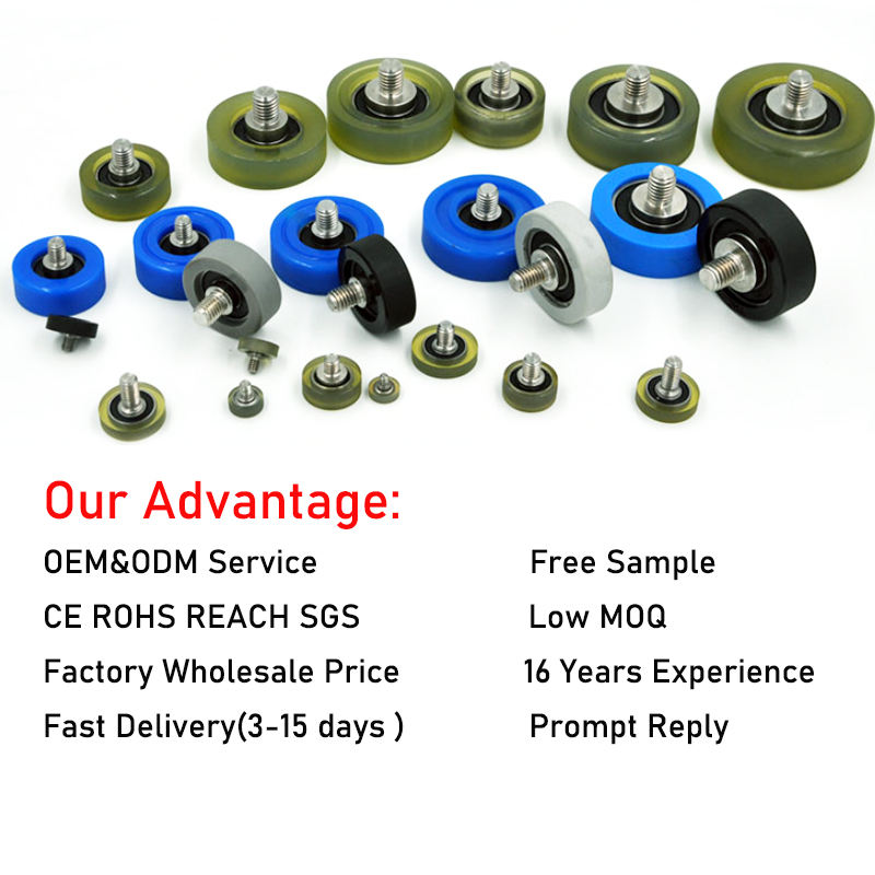 Máquina de embalaje de polvo de lavado, rueda de rodillo de goma Pu de 6x30x12mm, rodamiento de rosca externo recubierto de poliuretano