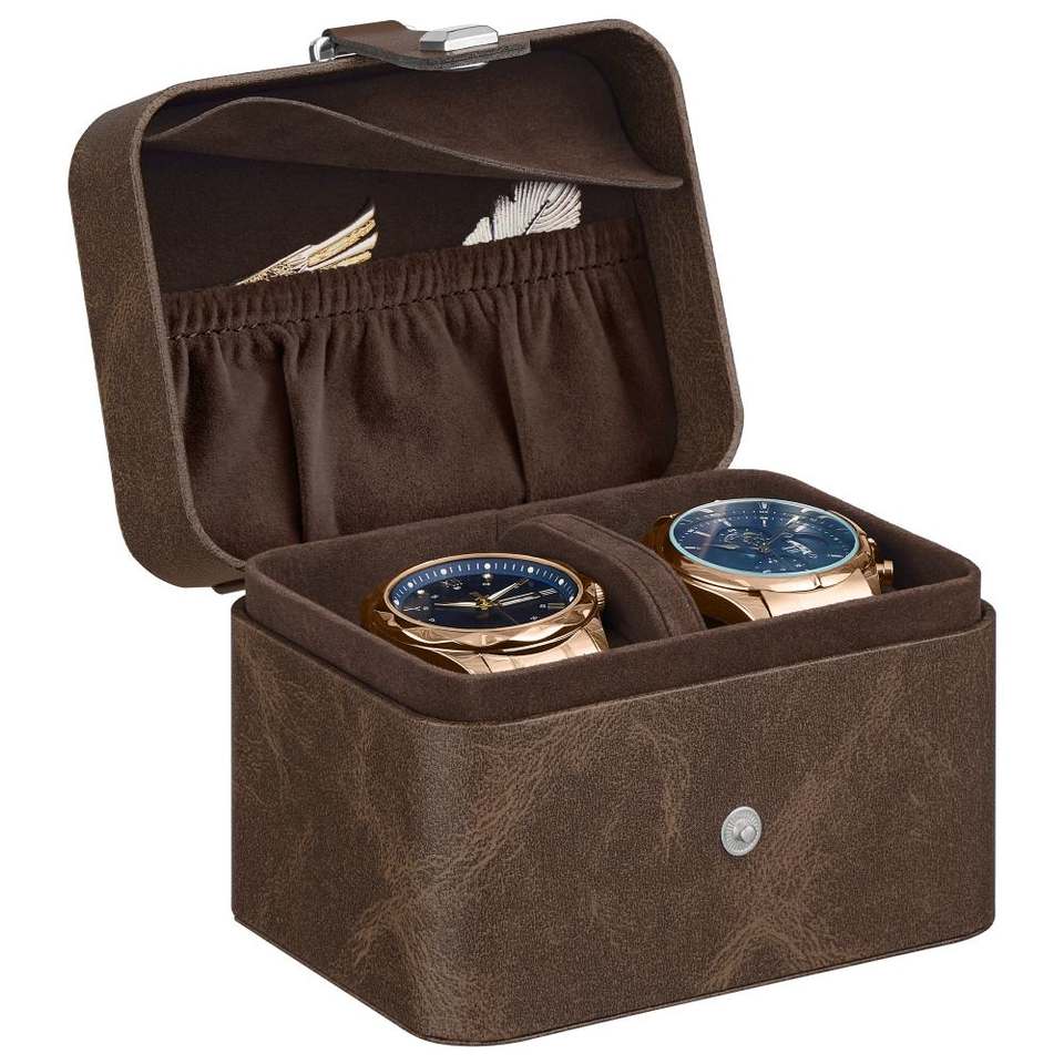 Estuche para Relojes Rectangular de Cuero Sintético con Interior de Gamuza Sintética, Cierre de Botón y Compartimentos para Guardar Relojes