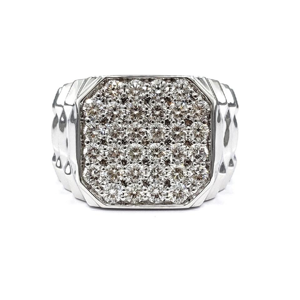 Anillo de Hombre con Diseño de Reloj, Aspecto Elegante, Joyería de Oro Blanco Sólido de 18 Quilates con Diamante Natural en Forma Cuadrada para Caballero