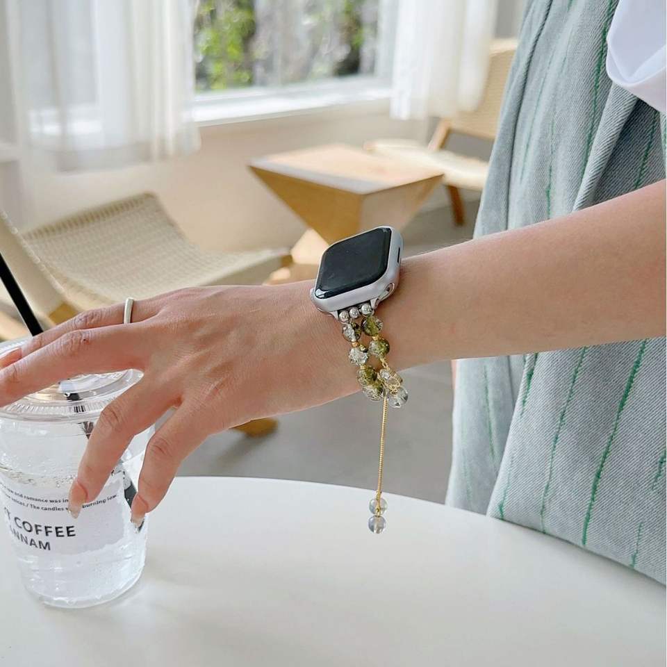 Correa de reloj para Apple Watch Series 10 9 8 7 SE Correa de reloj de piedras preciosas de lujo para Mujer 40 41 44 45 42 46 49mm