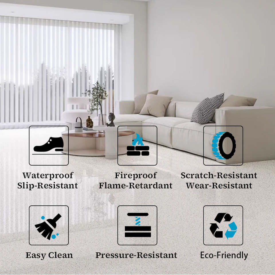 Pintura de Piso Autonivelante de Resina Epoxi a Base de Agua con Arena de Color, Efecto Mármol de Alto Brillo, Pintura de Piso Epoxi con Arena de Color para Concreto