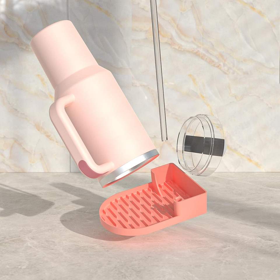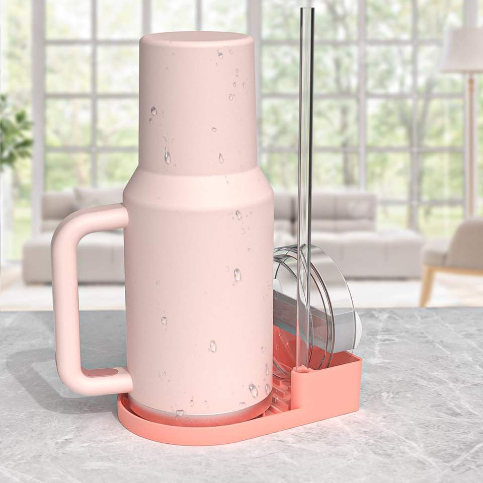 Estante de Secado para Botellas de Agua Stanley, Soporte de Silicona Mejorado con Cepillo de Limpieza 3 en 1 para Tapas de Vasos Stanley