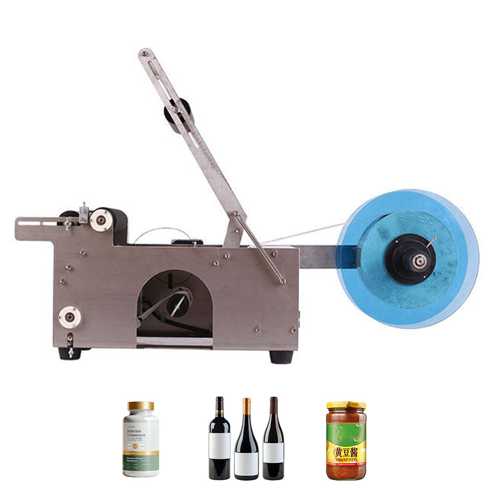 Máquina etiquetadora de botellas de agua semiautomática para aceite, jugo, bebidas, cosméticos, botellas redondas, champú, loción y frascos.