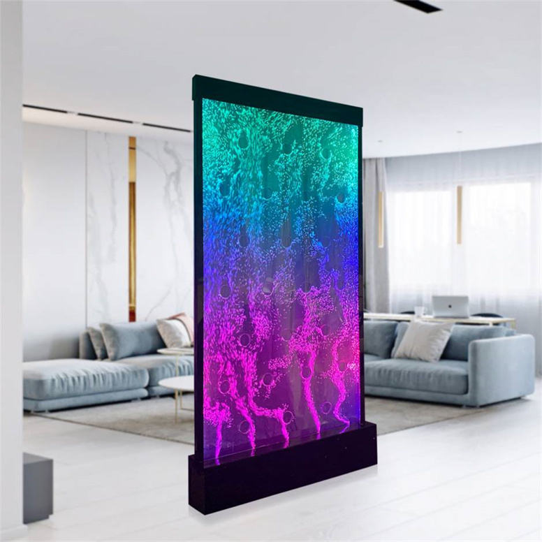 Panel de burbujas de agua con luz LED de colores cambiantes, fuente de agua interior, pared de burbujas de agua.