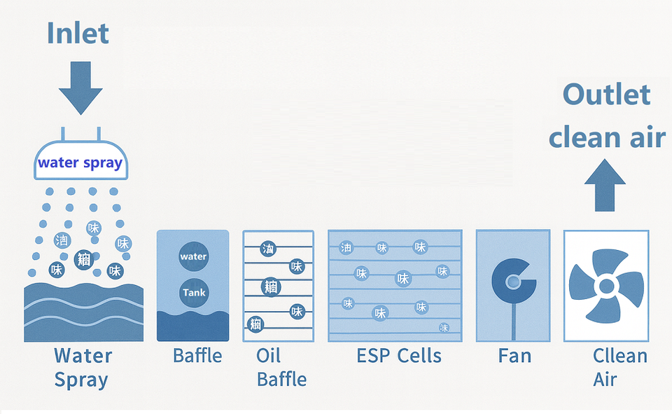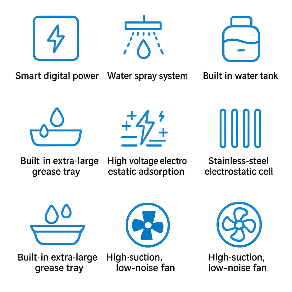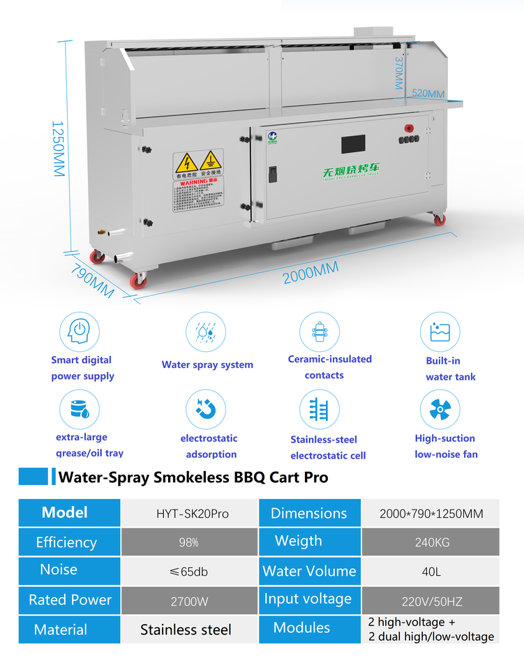 Carrito de Barbacoa Electrostático con Circulación de Agua | Parrilla sin Humo con Sistema de Pulverización de Agua y Filtración Multietapa para Barbacoa