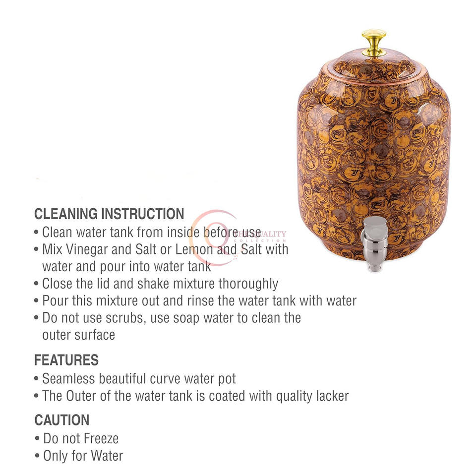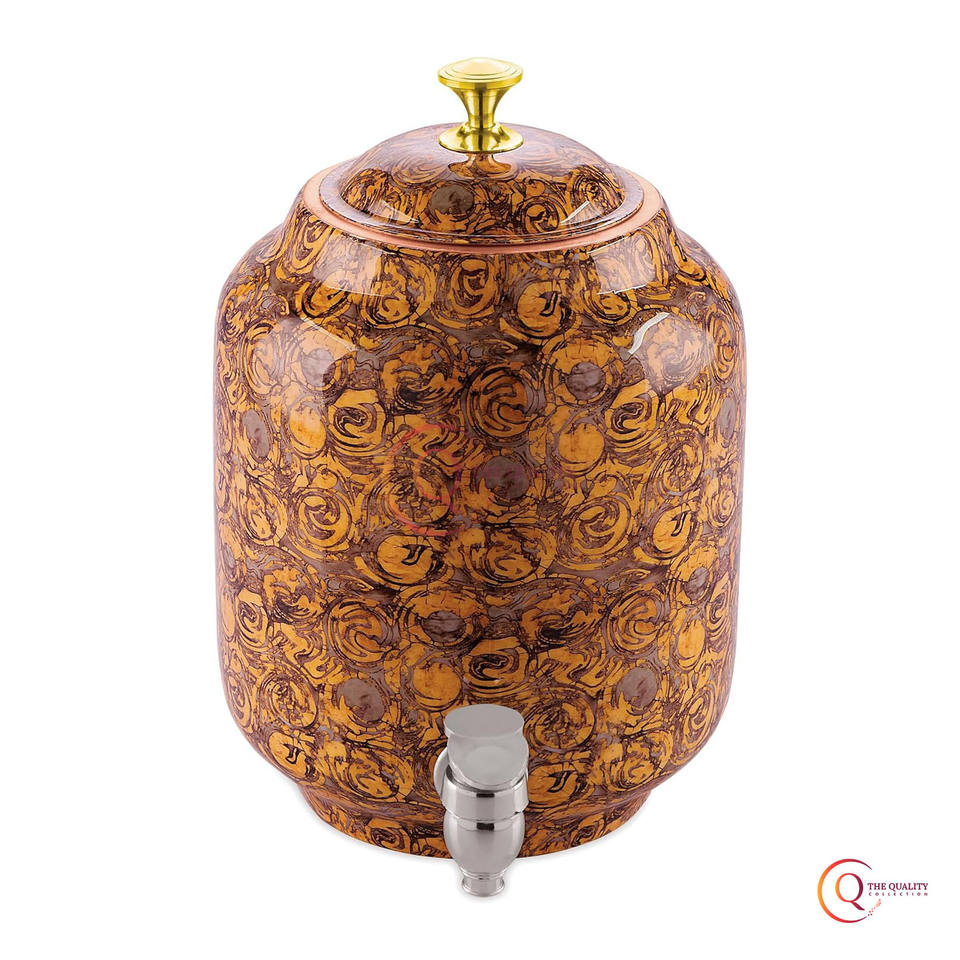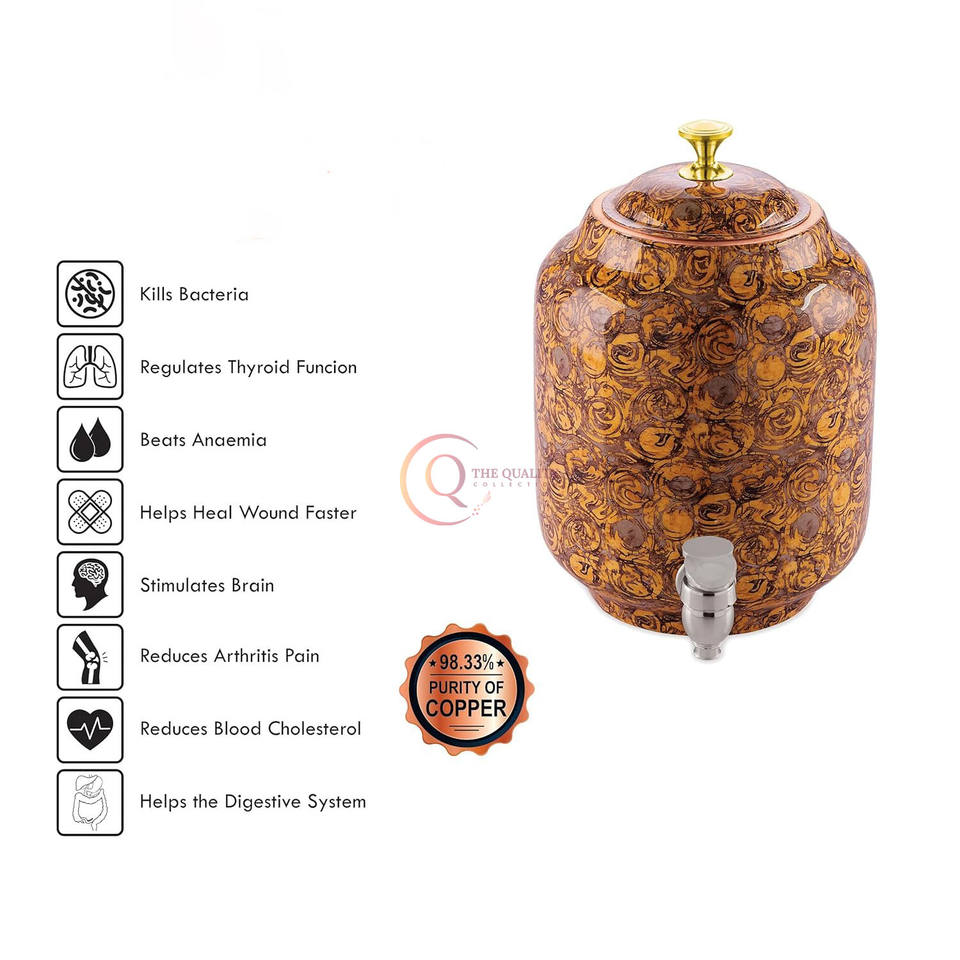 Enfriador de agua y juego de vidrio con soporte Cobre Metal Nuevo diseño Dispensador de agua de cobre impreso para uso diario