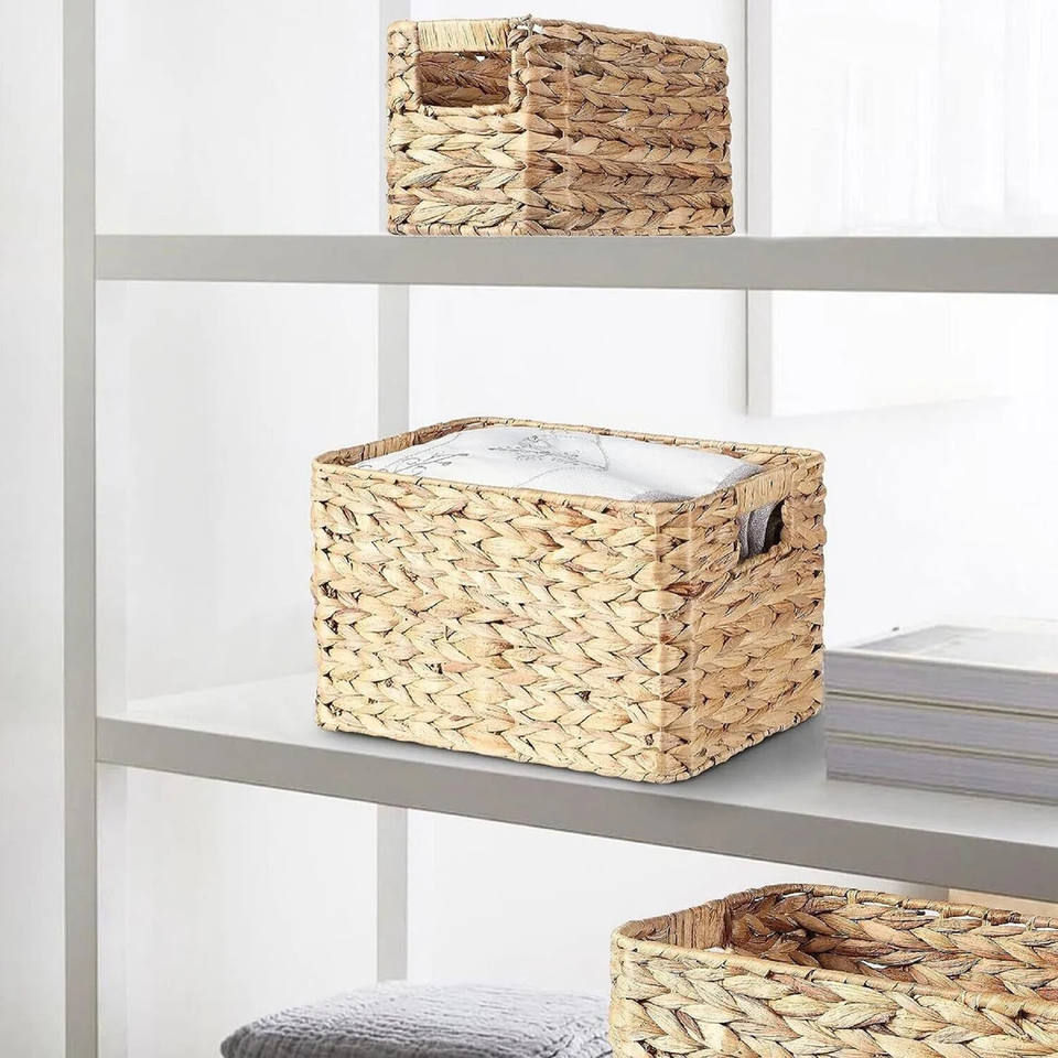 Cesta de jacinto de agua con asas integradas Solución de almacenamiento para el hogar Cesto de regalo Ideal para sala de estar Dormitorio