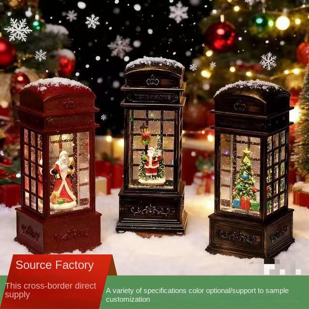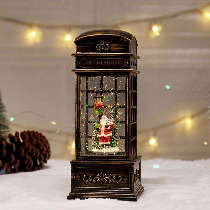 Adorno de luz nocturna LED con inyección de agua, música, nieve, cabina telefónica navideña y lámpara de viento, a pilas