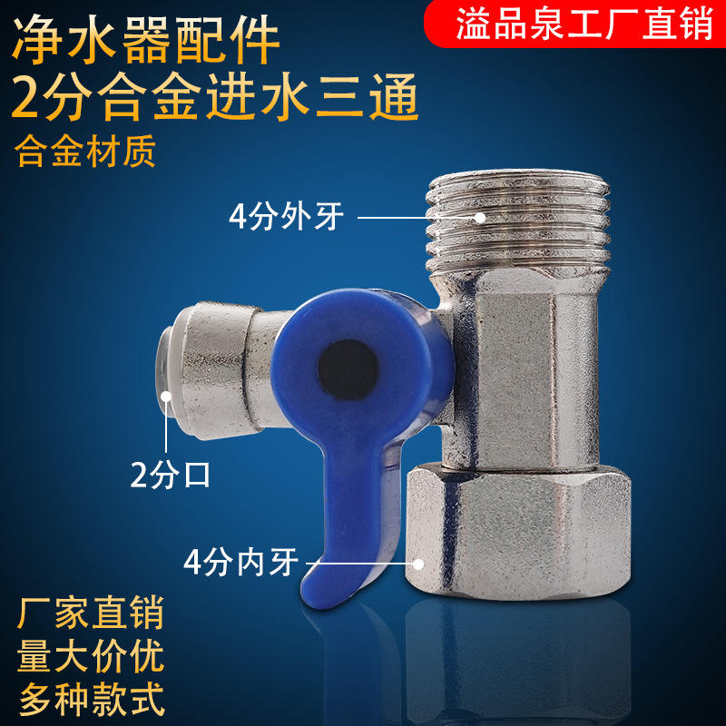 Válvula de tres vías para purificador de agua, 1 entrada, de aleación, con mango azul, para sistema de ósmosis inversa