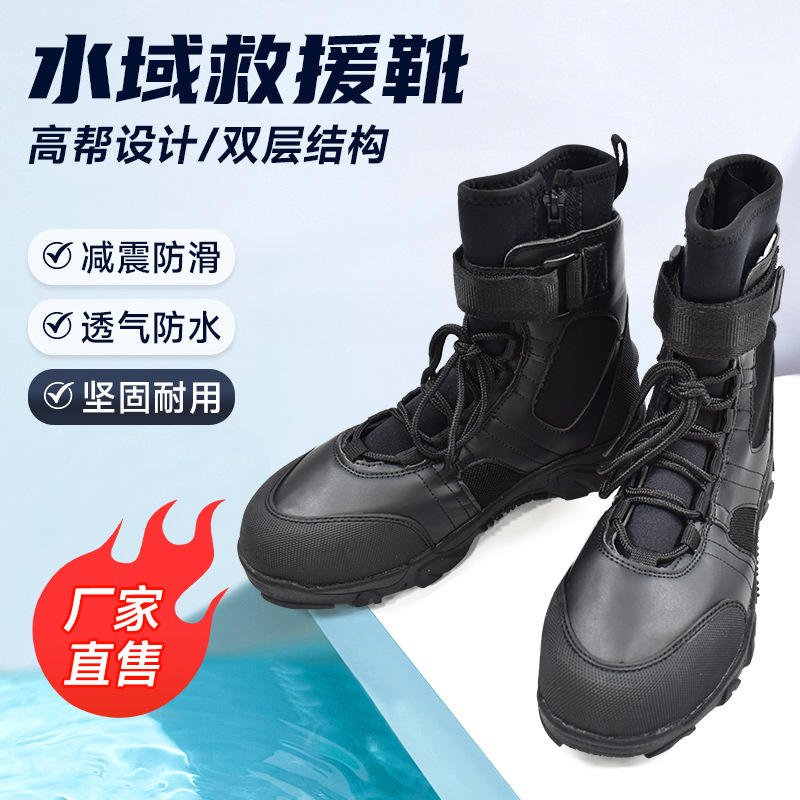 Botas de rescate acuático de caña alta, doble capa, impermeables, duraderas, para protección contra incendios y rescate, de cuero, para exteriores.